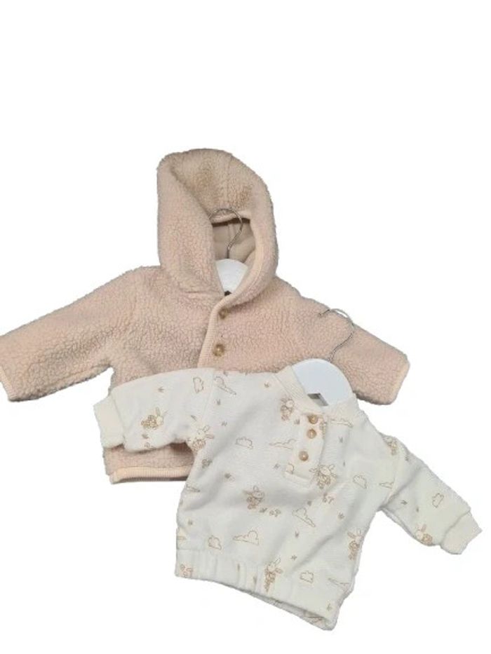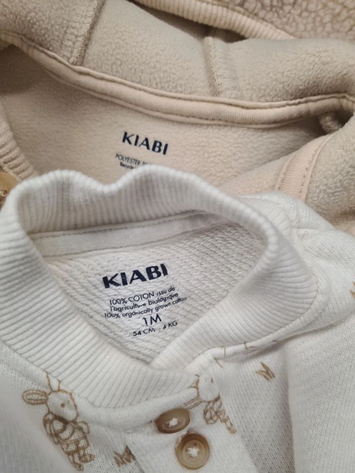1 veste chaude à capuche kiabi 1 mois Beige 1 sweat kiabi blanc/ beige Coton/ Polyester Très bon état