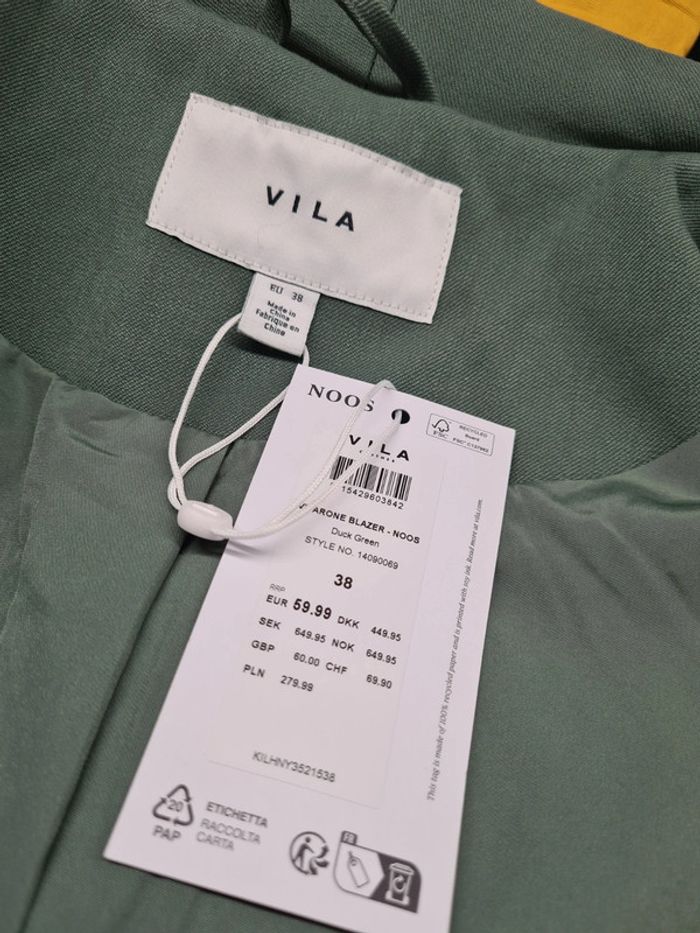 38 Épaule à Épaule 38 cms Largeur sous aisselles 46 Hauteur 76 Manches 62 Polyester/ Viscose Vert Neuve