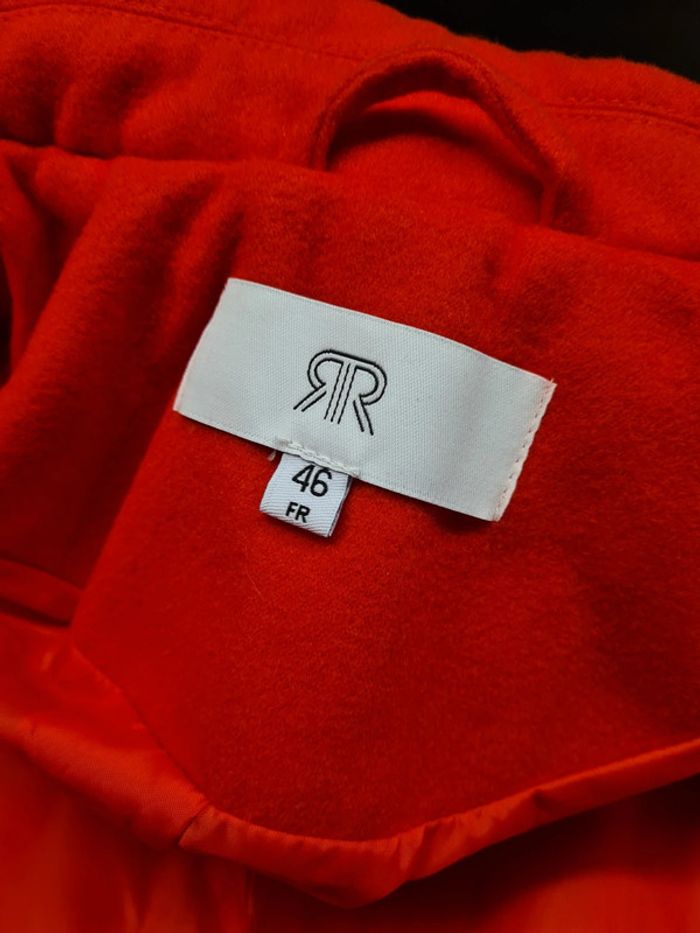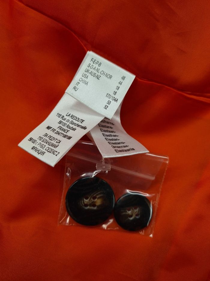Modèle automne/ hiver Fr46 Épaule à Épaule 46 cms Largeur sous aisselles 54 Hauteur 100 Manches 65 Corail vif Polyester/ Viscose/ elastan Jamais portée