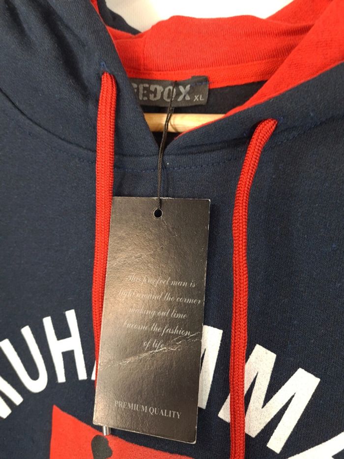 Xl Sweat à capuche Épaule à Épaule 46 cms Largeur sous aisselles 52 Hauteur 78 Pantalon taille élastiquée Hauteur 110 cms Entrejambe 83 Marine Coton/ Polyester Neuf