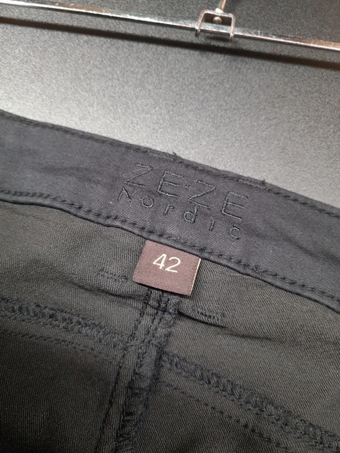 42 Tour de taille 84 cms Hauteur 96 Entrejambe 72 Taille basse Coton/ Polyester/ elastan Noir
