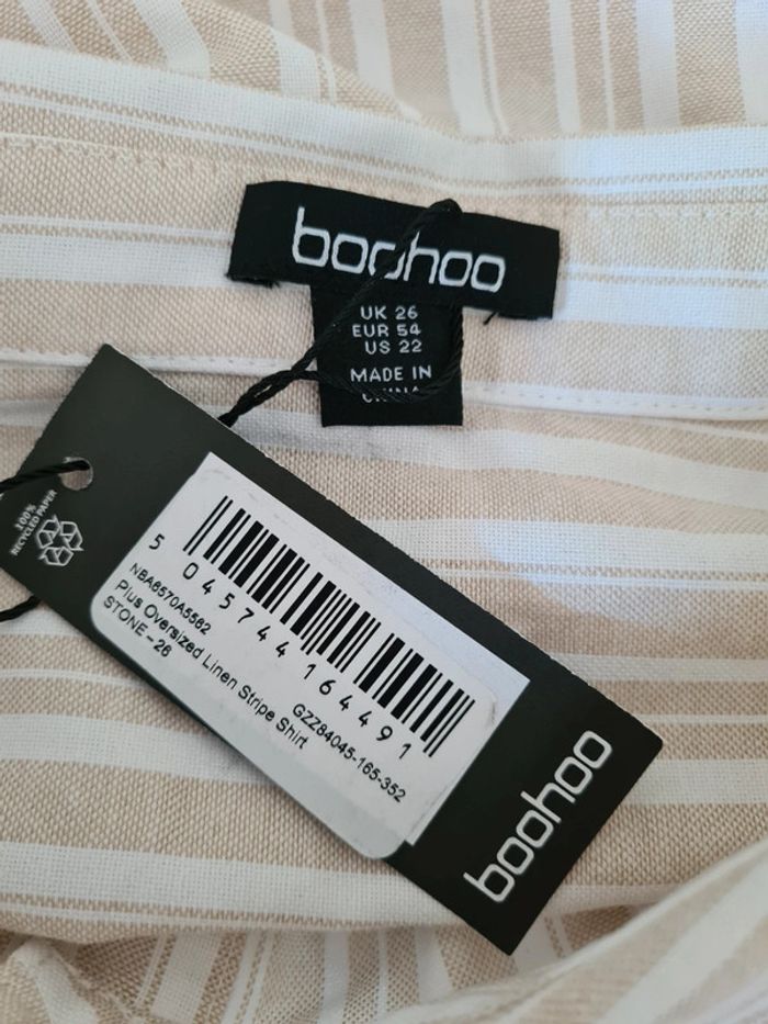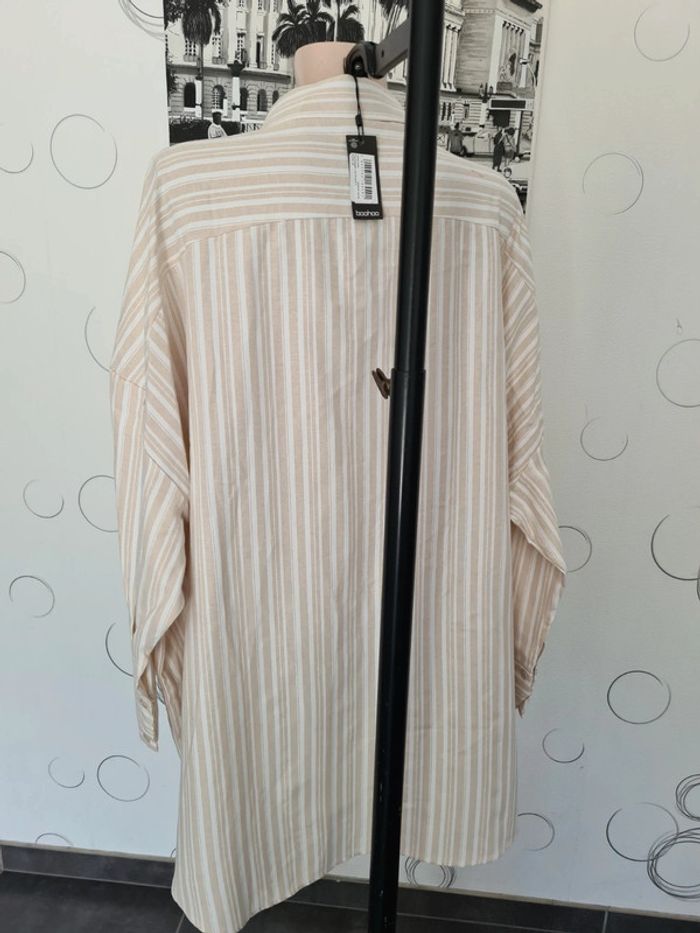 Modèle Oversize Taille 54 Largeur sous aisselles 86 cms Hauteur 96 Coton/ Polyester Blanc/ beige Neuve