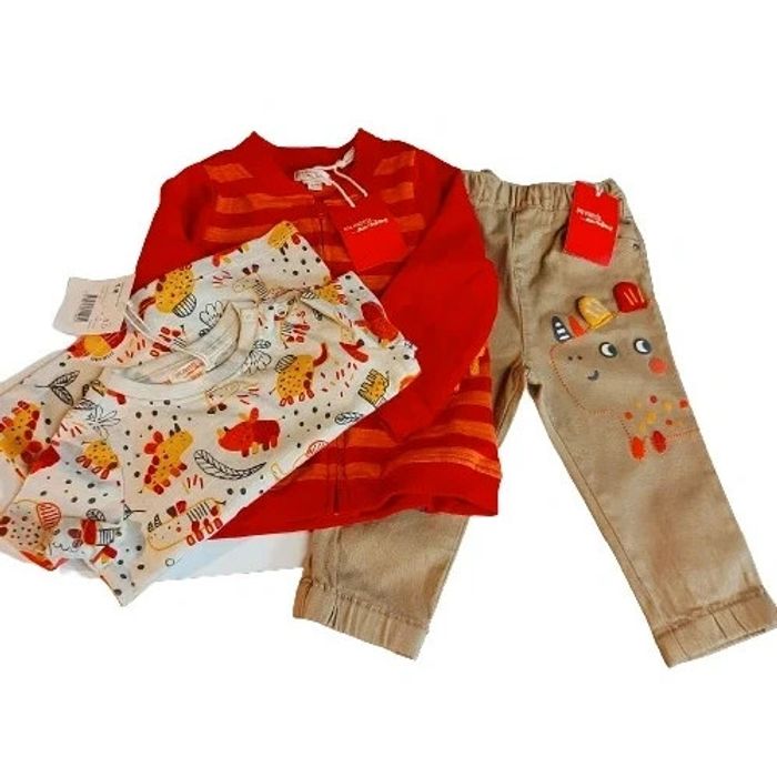 1 pantalon beige Coton 1 Tee-shirt 1 veste zippée 18 mois Garçon Jamais porté