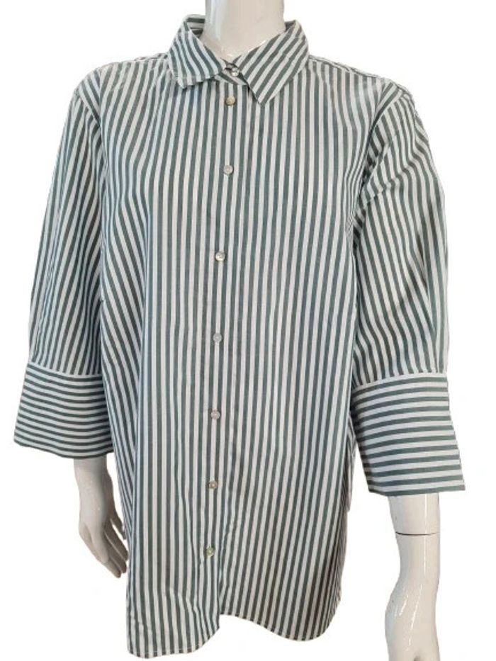 Taille 46 Épaule à Épaule 46 cms Largeur sous aisselles 62 Hauteur 74 Manches 44 Rayé Vert/ blanc Coton/ lyocell