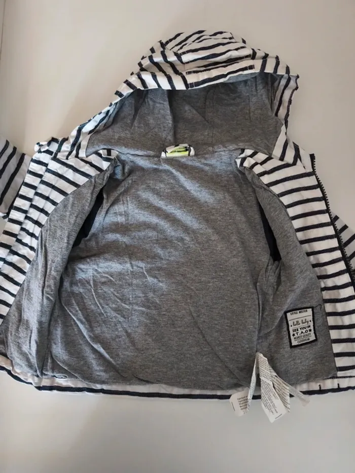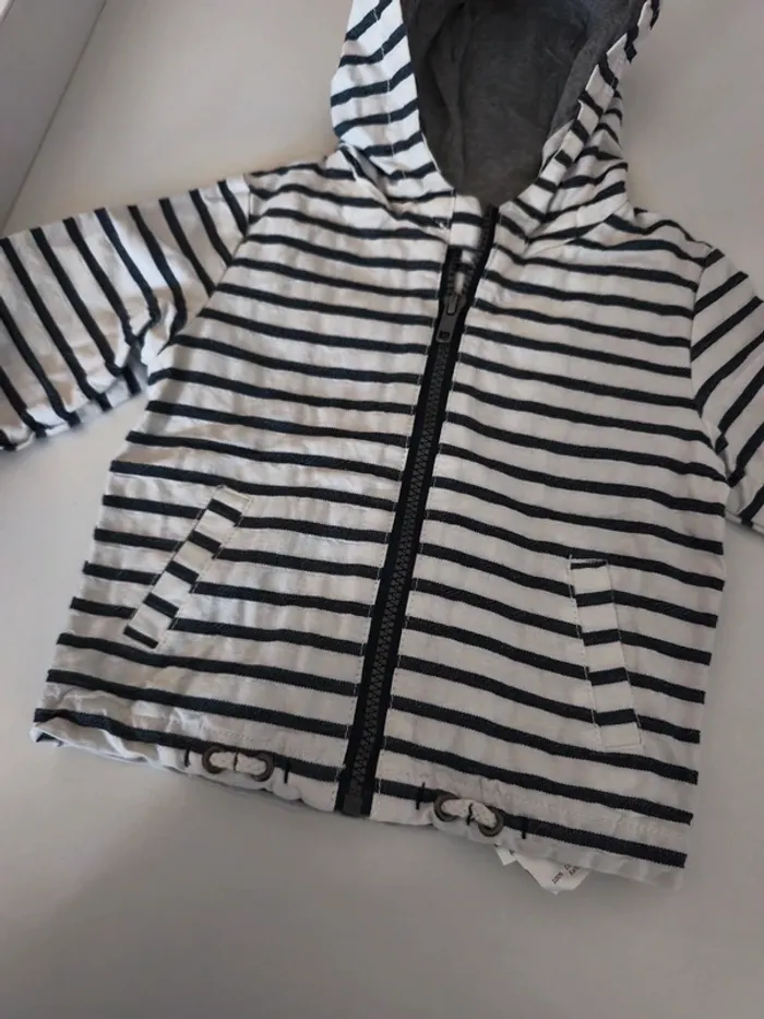 Tout mon 12 mois ici #ldura12mois Manteau mi saison à capuche mixte, idéal pour la rentrée Coupe vent Entièrement doublé Rayures marinière Peu porté comme neuf Très sympa Maison non fumeur et sans animaux Envoi possible le jour même avec mondial relay et chrono shop ou remise en main propre sur Saleilles #ldurabebe