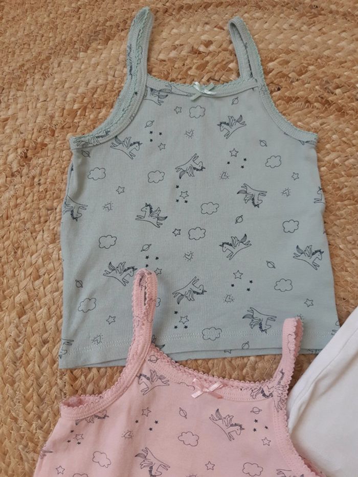3 maillots de corps à bretelles Motif licornes Achetés neufs, très peu portés #anthonyagnes_fille3A