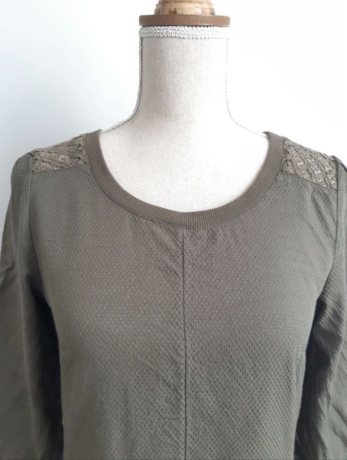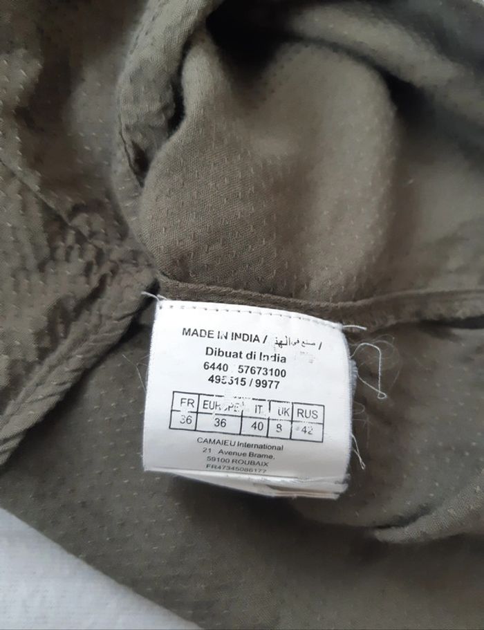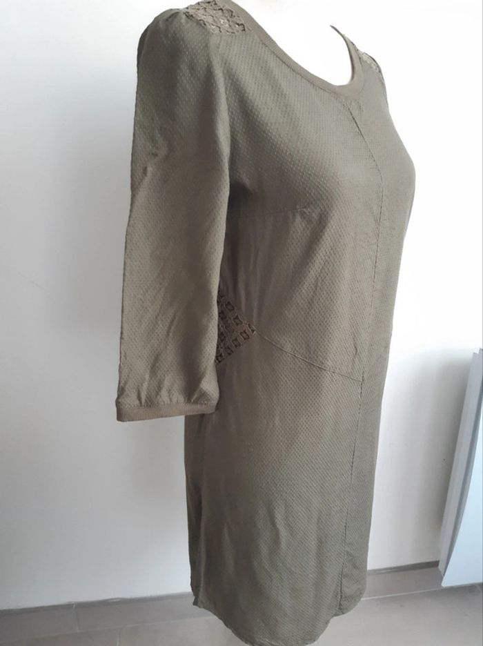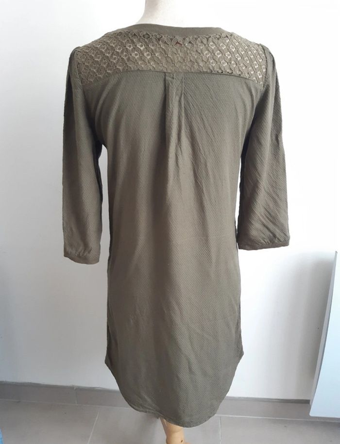 Robe kaki Manches 3/4 Col arrondi Partie ajourée effet dentelle Taille S/36 Camaïeu #anthonyagnes_femme36