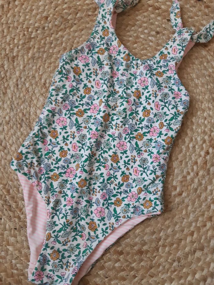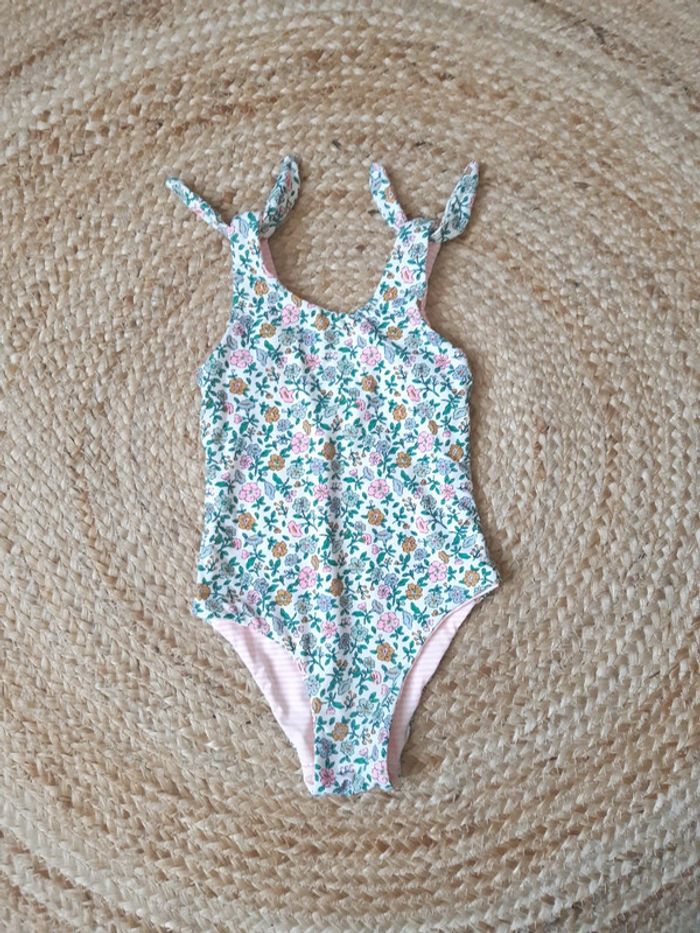Maillot de bain à motif fleurs/ imprimé fleuri d'un côté et rayé de l'autre Nœuds sur les bretelles Convient pour un 12 mois #anthonyagnes_bebe12M