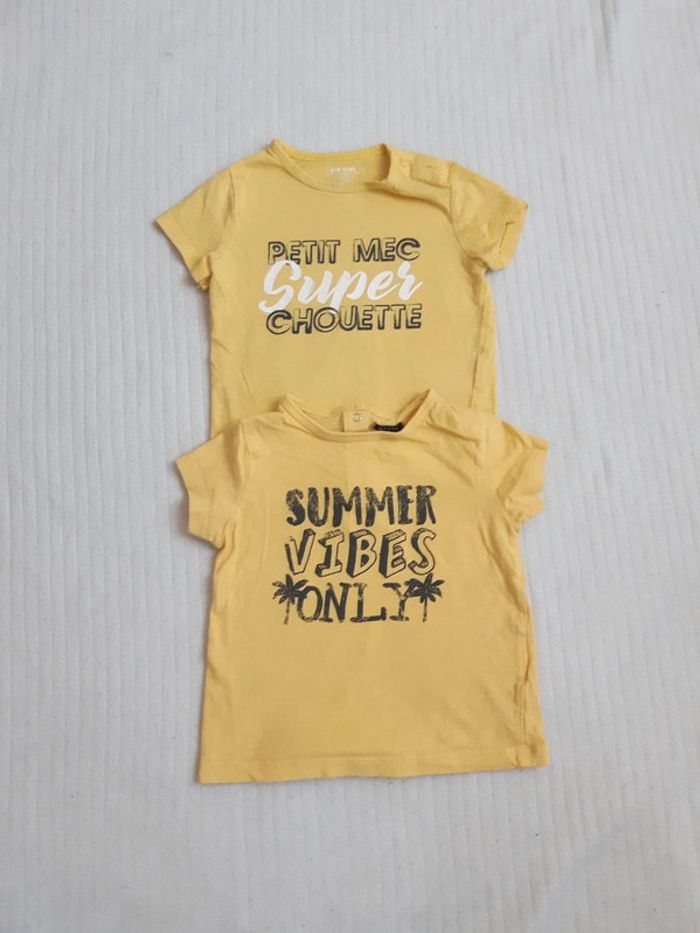 2 tee-shirts jaune avec inscription #anthonyagnes_bebe18M