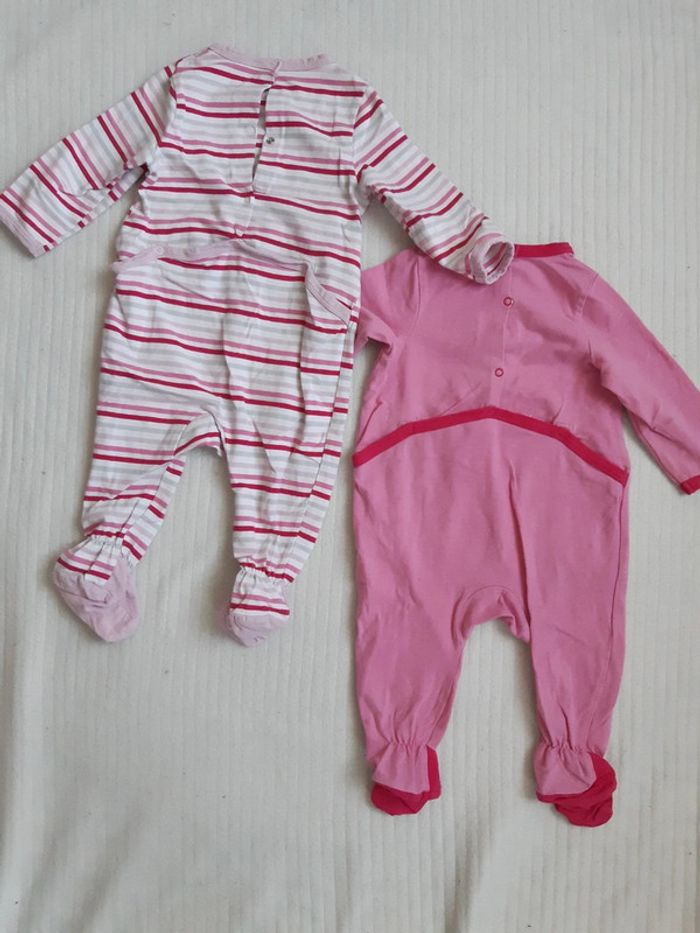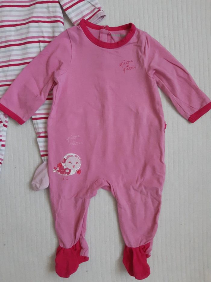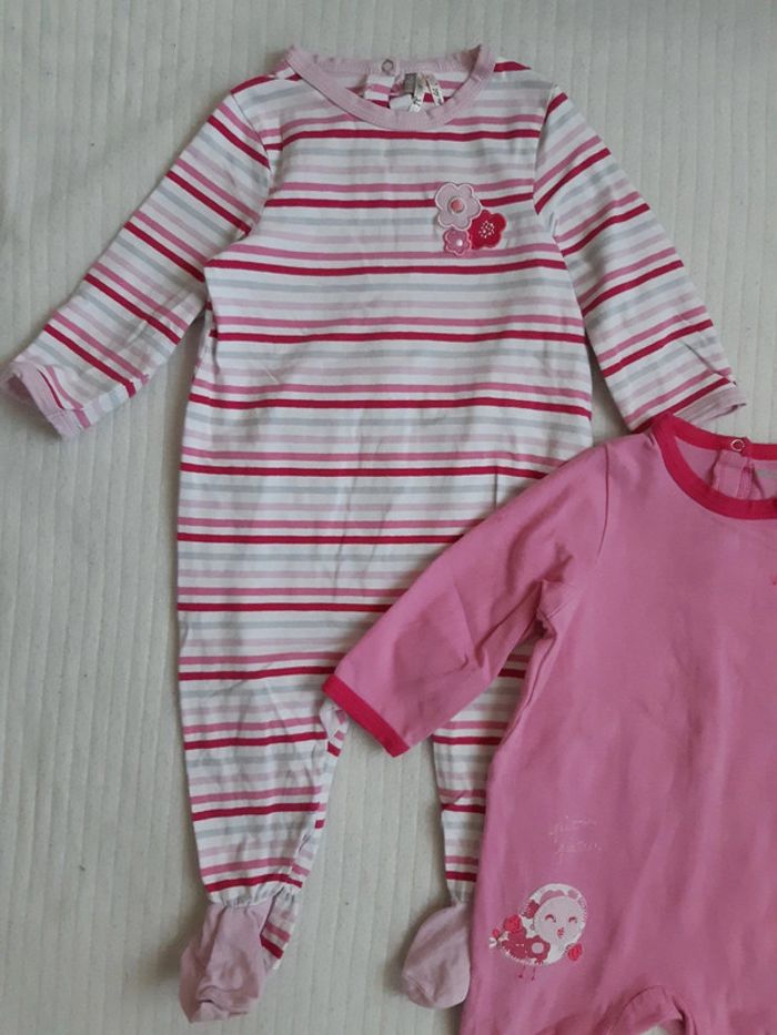 2 pyjamas 1 pièce Motif rayé, fleurs, oiseau Porté plusieurs fois #anthonyagnes_bebe12M
