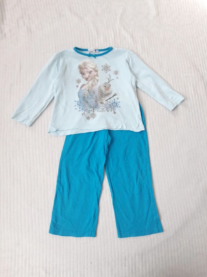 Pyjama fin haut manches longues et pantalon Elsa reine des neiges et Olaf, flocons Porté plusieurs fois, tâche voir photo #anthonyagnes_bebe24M