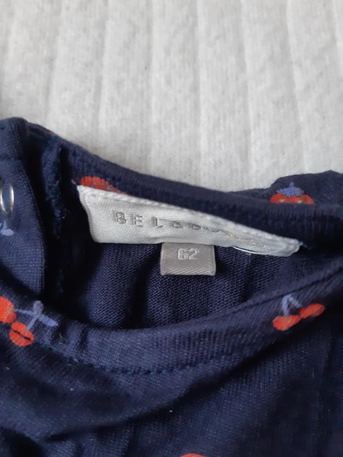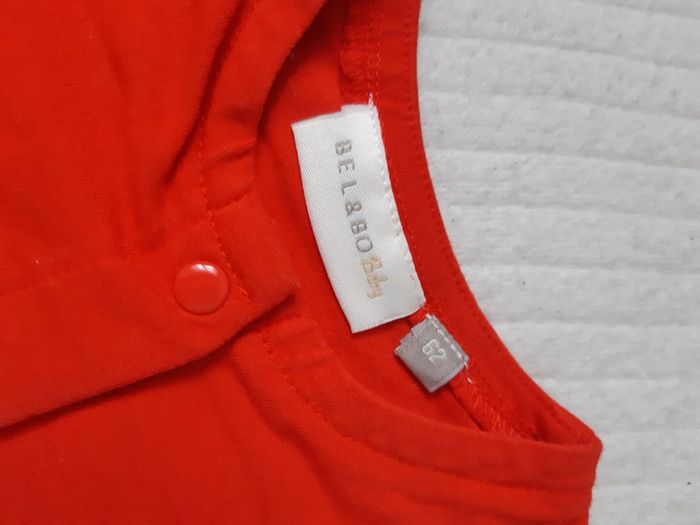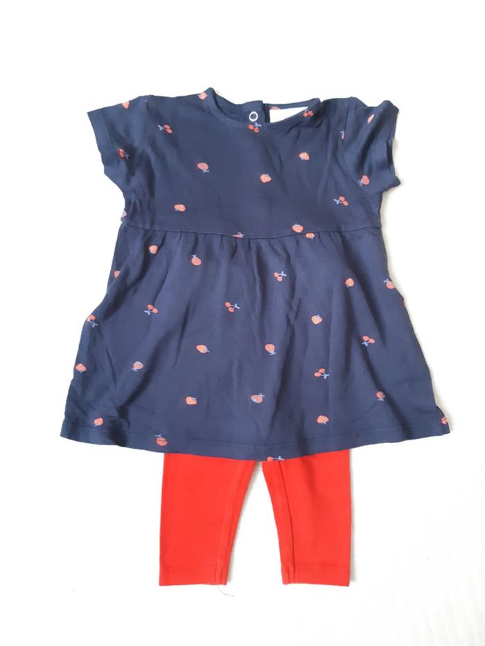 Ensemble gilet court et robe Bel&Bo 62 cm + legging rouge 3 mois Robe manches courtes motif fuits rouge, cerise, fraise et coccinelle, très peu portée Gilet et legging: couleur passé par endroit voir photo #anthonyagnes_bebe3M