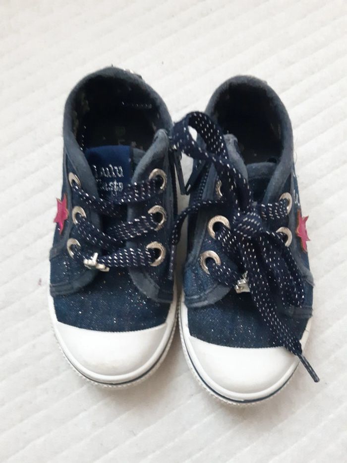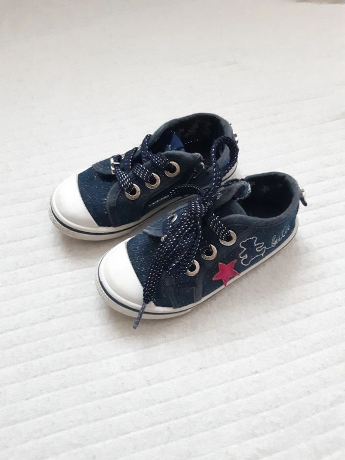 Basket basse Pointure 22 "Sur la tige, les lacets, la languette : ces tennis pour bébé fille brillent de partout ! On retrouve tout de suite la signature typique de la marque Lulu Castagnette, avec l’ourson brodé et une étoile aux reflets métallisés sur le côté. De petits bijoux métalliques ornent les lacets et la tirette arrière. Ces tennis LuluCastagnette adoptent une jolie forme avec leur bout renforcé en élastomère : un style indémodable qui trouvera vite sa place auprès des tenues de tous les jours. Pratique : ces baskets se ferment à l’aide d’un zip placé sur le côté interne du pied !" Gémo