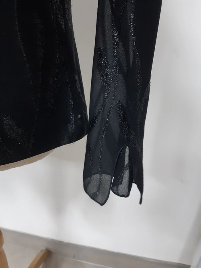 Haut noir pailleté fluide doublé Manches longues en transparence Fentes aux poignets #anthonyagnes_femme42