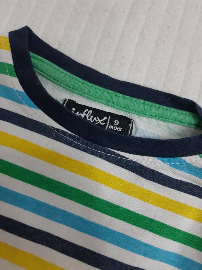 Tee-shirt manches longues rayé coloré, Influx, 9 mois Pantalon bleu, taille élastique réglable, Tape à l'oeil, 9 mois #anthonyagnes_bebe9M