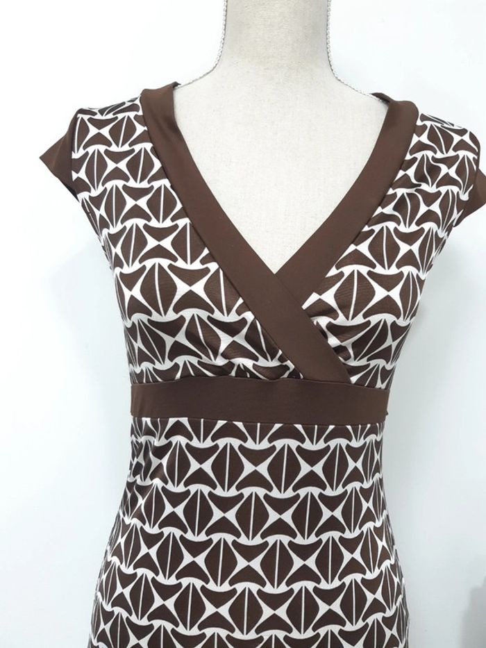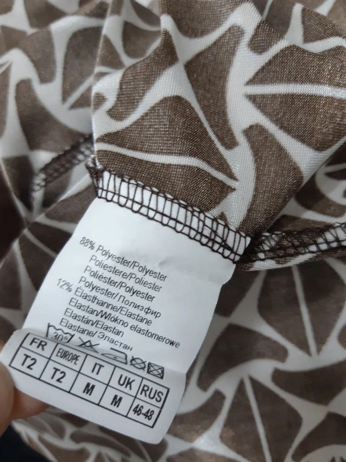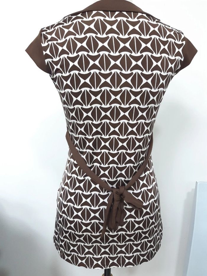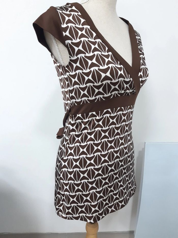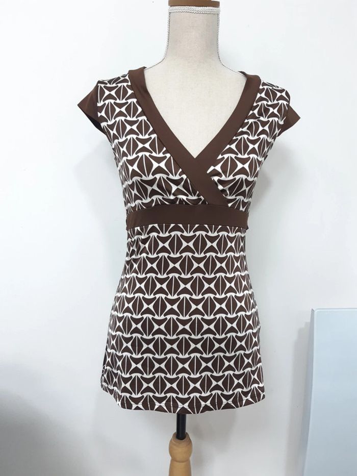 Tee-shirt manches courtes à motif Col V cache coeur/ à rabat Ruban à nouer dans le dos Tissu fluide Elasthanne et polyester Taille M/38 Camaïeu #anthonyagnes_femme38 #vêtement #femme #été #teeshirt #vintage #imprimé #motif #fluide #Tshirt