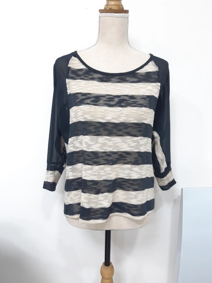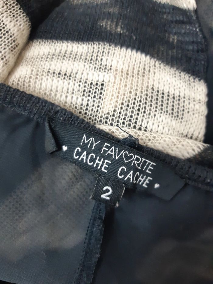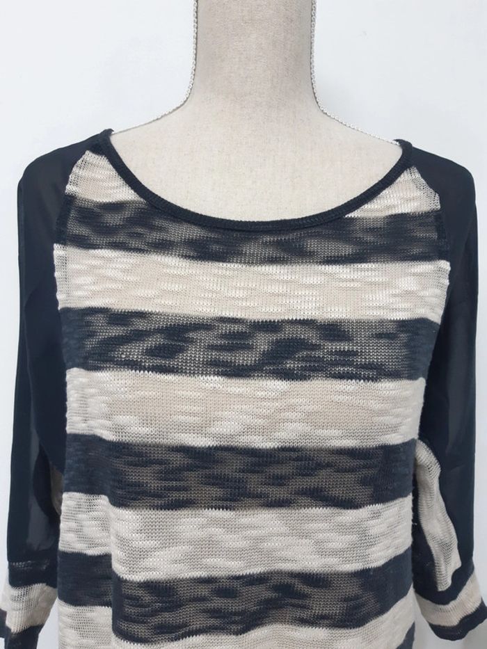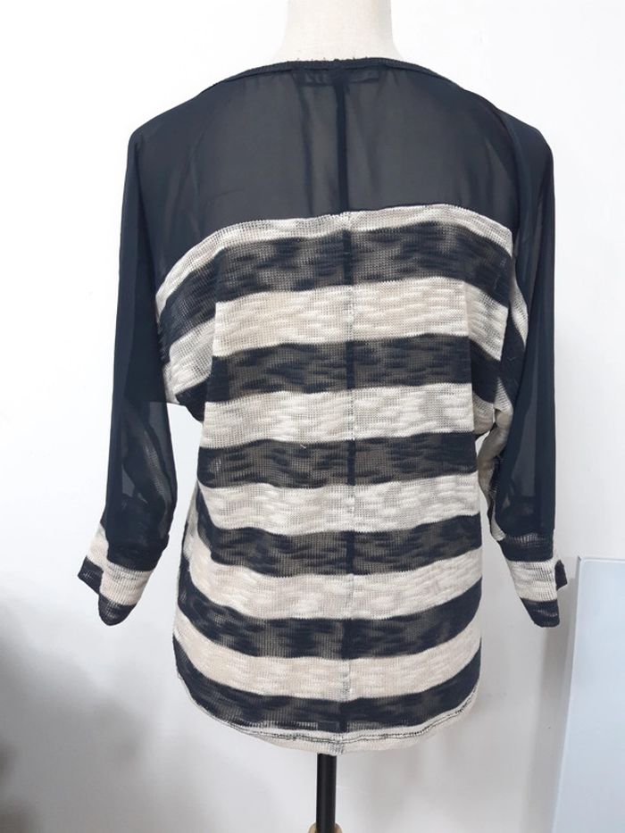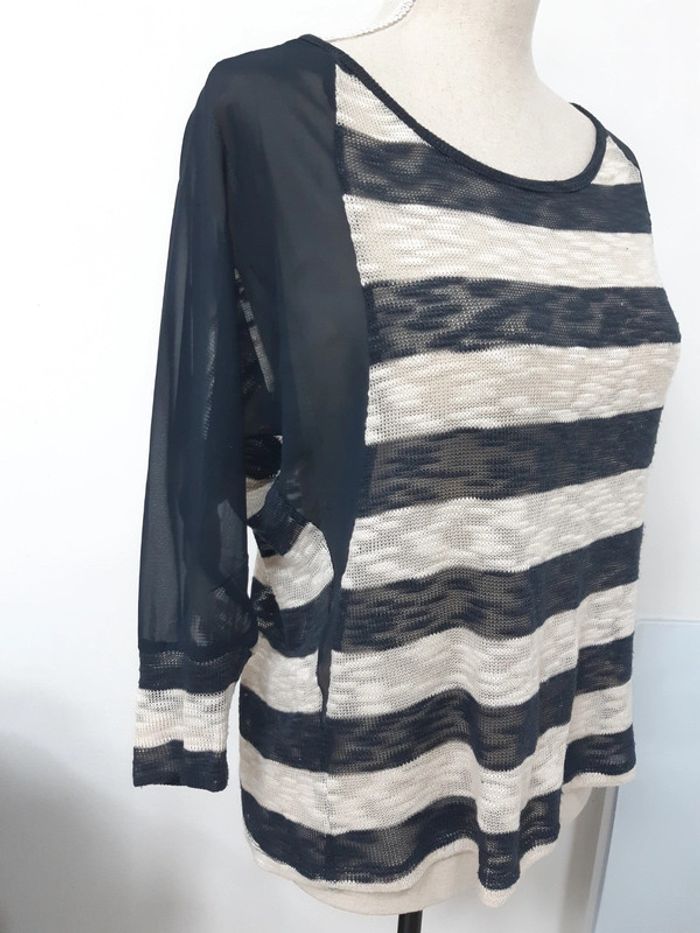 Haut rayé Manches mi longue Bi matière Tissu fin et transparent Maille ajourée Etiquette de matière coupée Taille M/38 Cache Cache #anthonyagnes_femme38