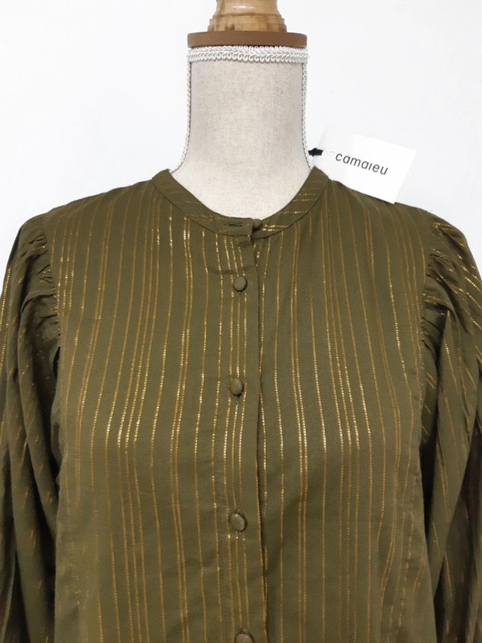 Blouse verte à rayures dorées neuve Camaïeu T38 - photo numéro 3