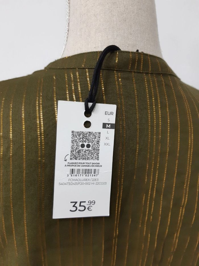 Blouse verte à rayures dorées neuve Camaïeu T38