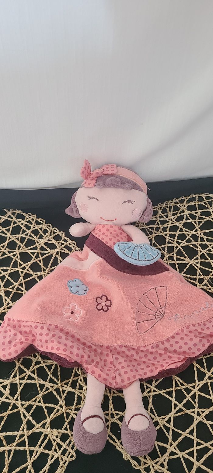 SAUTHON DOUDOU FILLE POUPEE HANAE PLAT ROSE EVENTAIL