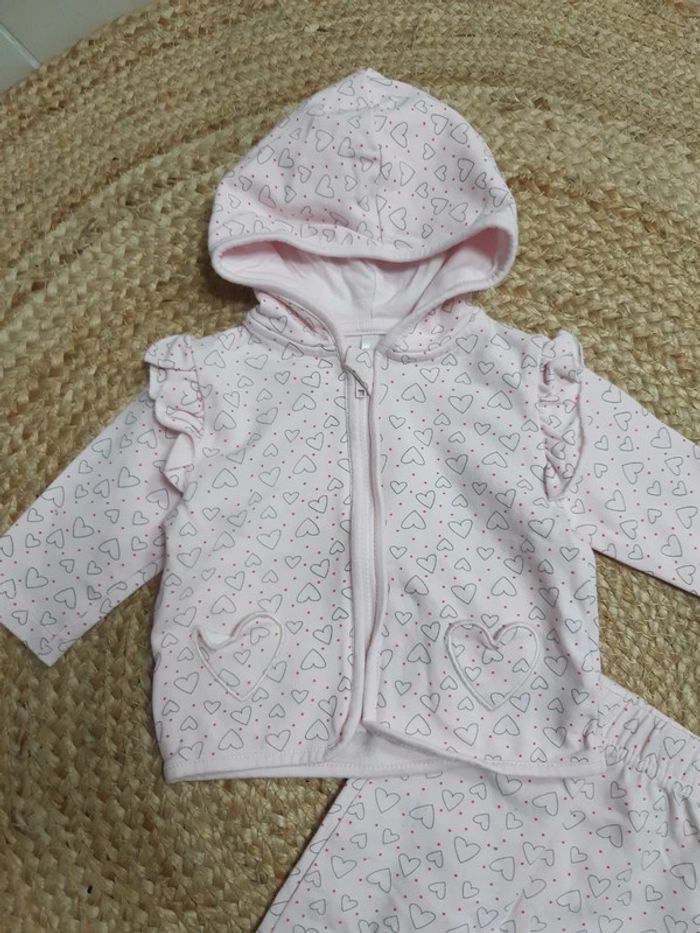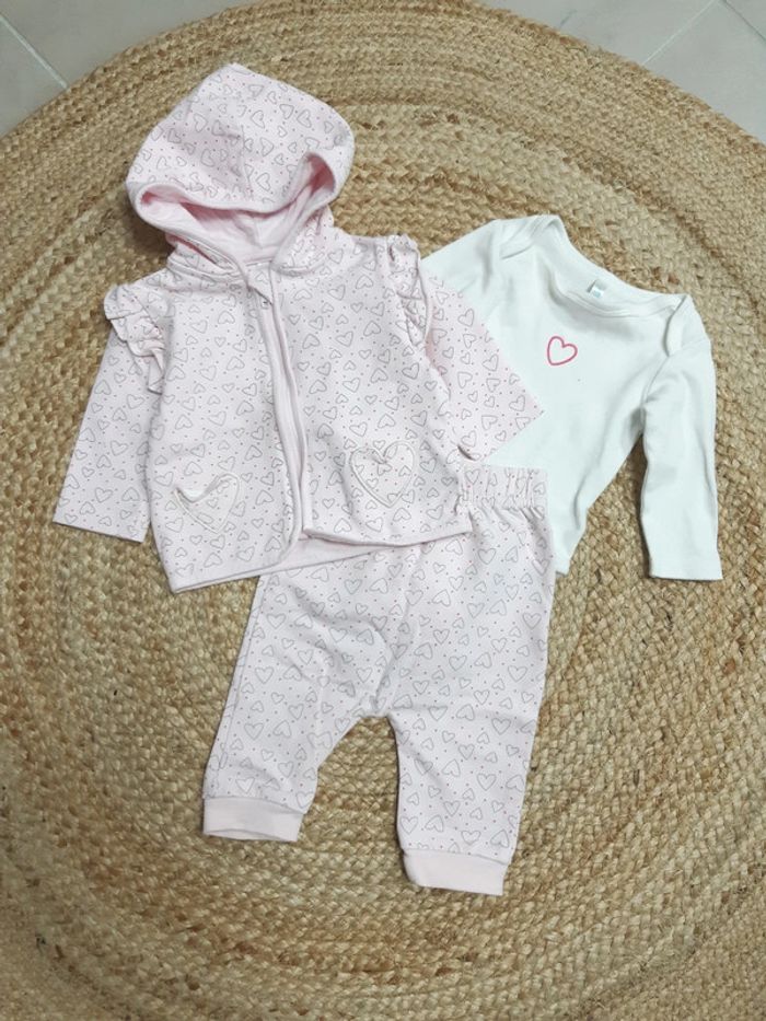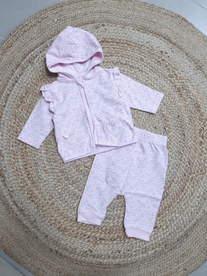 Ensemble gilet zippé à capuche, pantalon jogging et body coeur Tex 3 mois