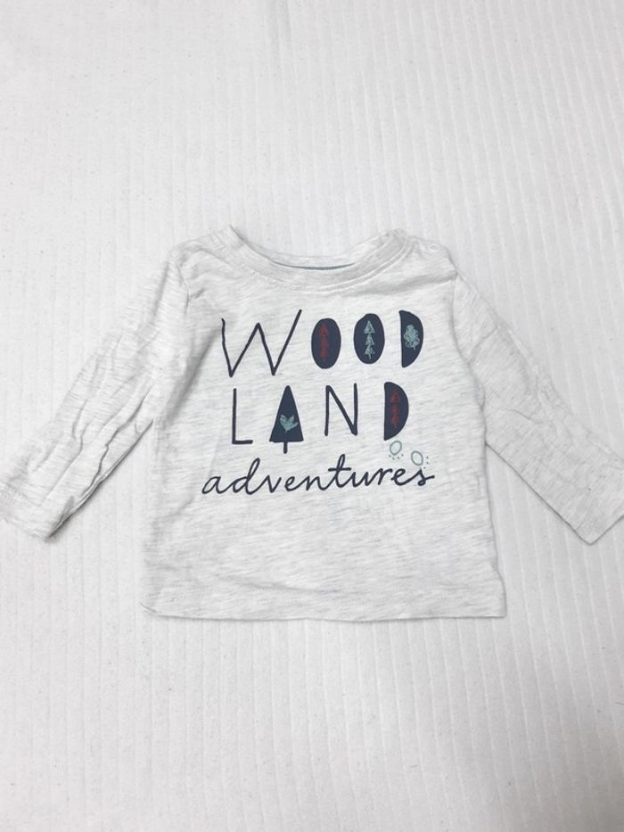 Tee shirt manches longues "Wood land adventures" Primark 68 cm Pantalon jogging Boutchou 6 mois #anthonyagnes_bebe6M