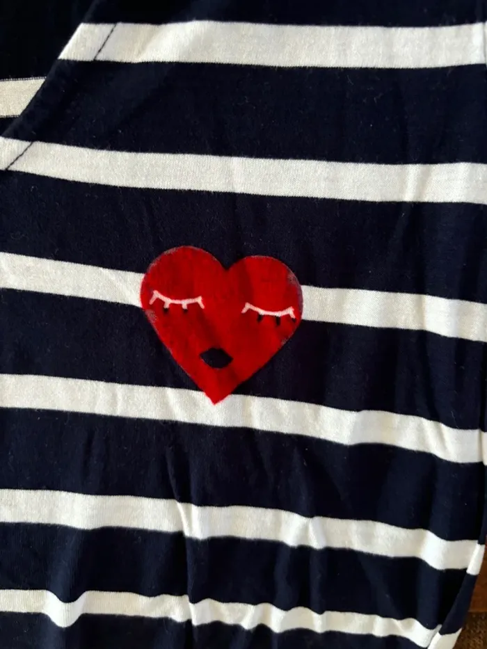 Teeshirt marinière avec cœur en velours - photo numéro 1