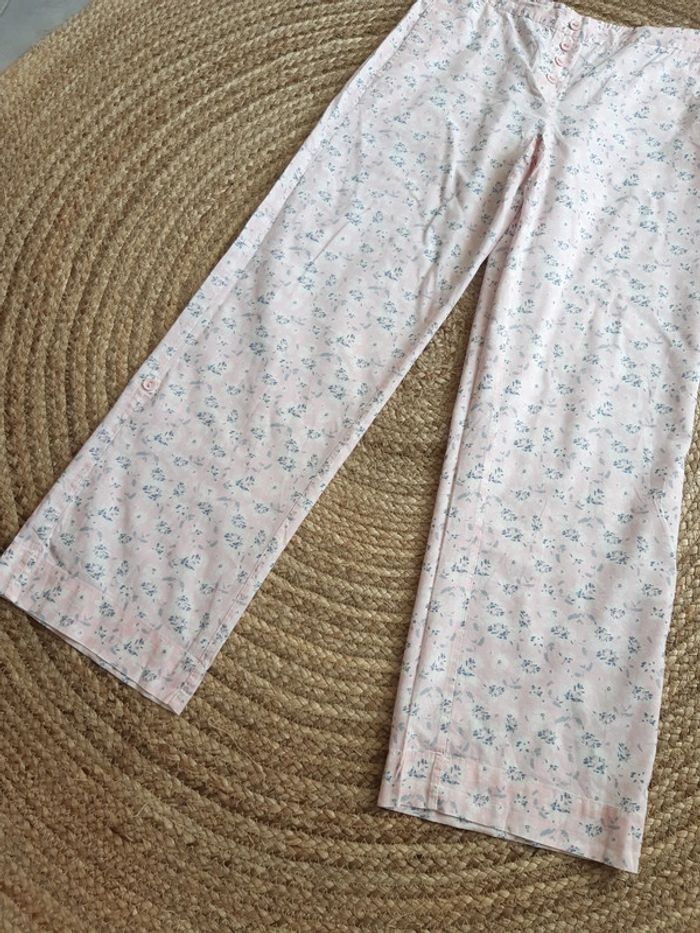 Pantalon large rose fleuri Possibilité de rebrousser les jambes Poches latérales Taille 38/40 3 Suisses #anthonyagnes_femme38 #anthonyagnes_femme40 #vêtement #femme #pantalon #vintage