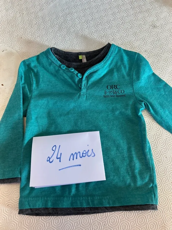 Teeshirt turquoise/vert manches longues Orchestra Effet double teeshirt Taille - 2 ans En excellent état, comme neuf Prix d’achat : 13,99€ 🌸 maison non fumeur 🌸 ☀️ n’hésitez pas à jeter un œil au reste de mon dressing, lots et offres possibles ☀️