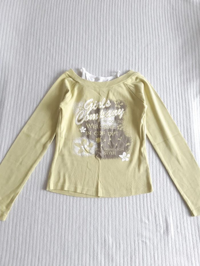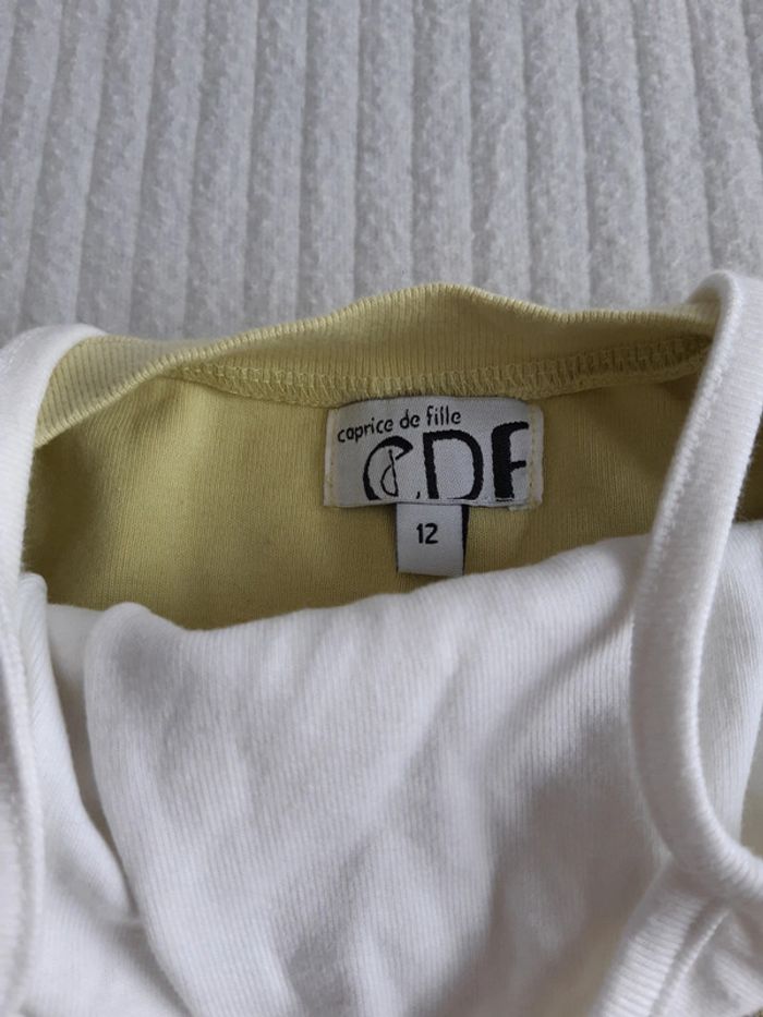 Haut/ tee shirt manches longues et bretelles s'attachant derrière le cou Vert clair Motif fleurs et écriture 100% coton 12 ans #anthonyagnes_fille12A