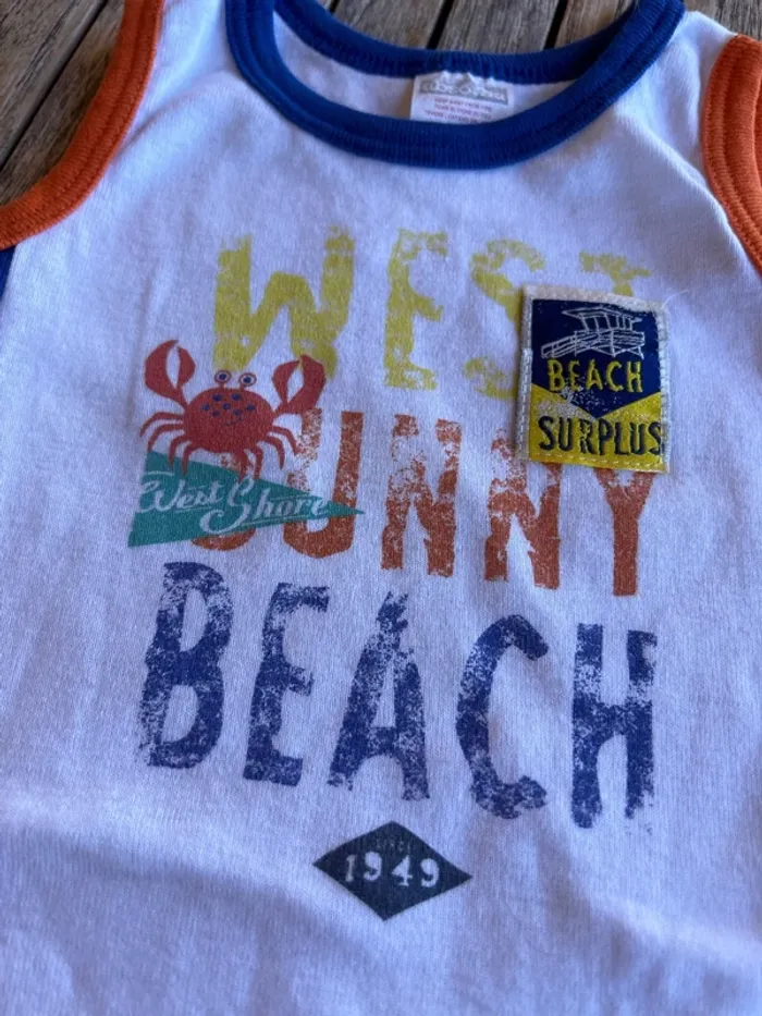 Lot de 2 combishorts sans manche « west sunny beach » Absorba pour bébé garçon Taille - 6 mois Pressions à l’entrejambe Super pratique pour bébé en été Très peu portés car bébé a vite grandi, en excellent état Prix d’achat d’un seul Combishort : 25€ 🌸 maison non fumeur 🌸 ☀️ n’hésitez pas à jeter un œil au reste de mon dressing, lots et offres possibles ☀️