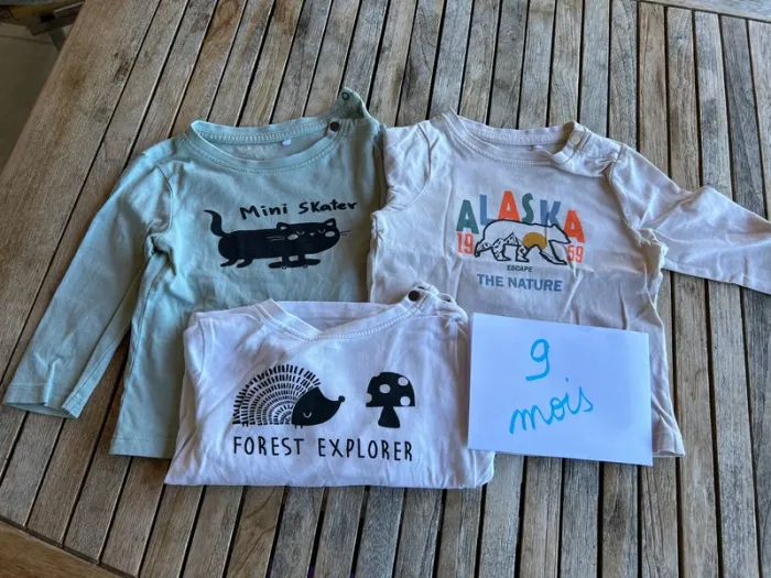 Lot de 3 T-shirts manches longues Orchestra Taille - 9 mois Portés mais en excellent état Prix d’achat du « mini skater » : 3,99€ Prix d’achat du « Forest explorer » : 3,99€ Prix d’achat de l’ «Alaska » : 5,99€ 🌸 maison non fumeur 🌸 ☀️ n’hésitez pas à jeter un œil au reste de mon dressing, lots et offres possibles ☀️