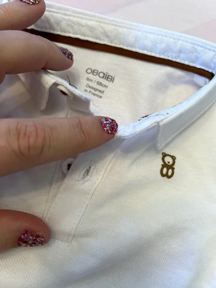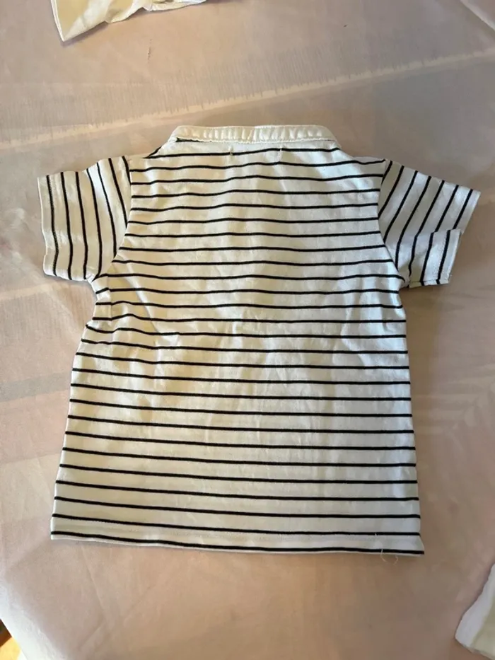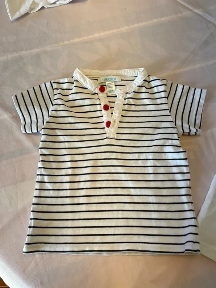 Lot teeshirt rayé marin avec petits boutons rouge + polo uni blanc Obaïbi Taille - 6 mois Excellent état, comme neufs Prix d’achat polo : 6,99€ Prix d’achat teeshirt : 5,99€ 🌸 maison non fumeur 🌸