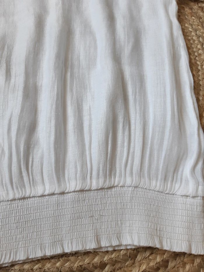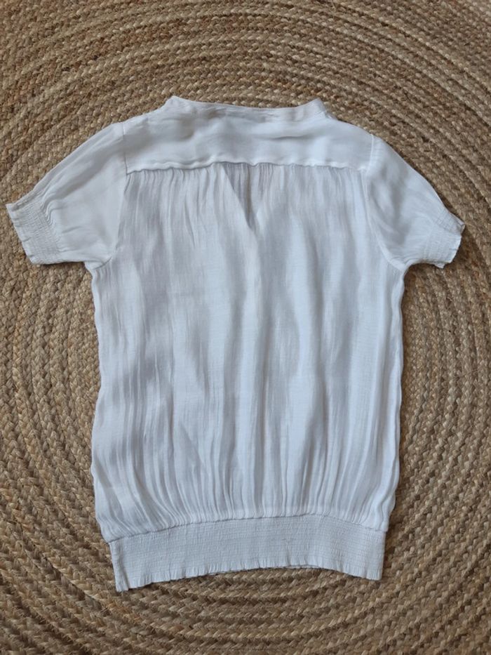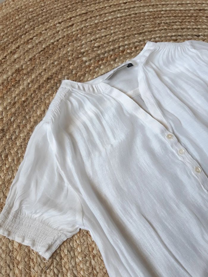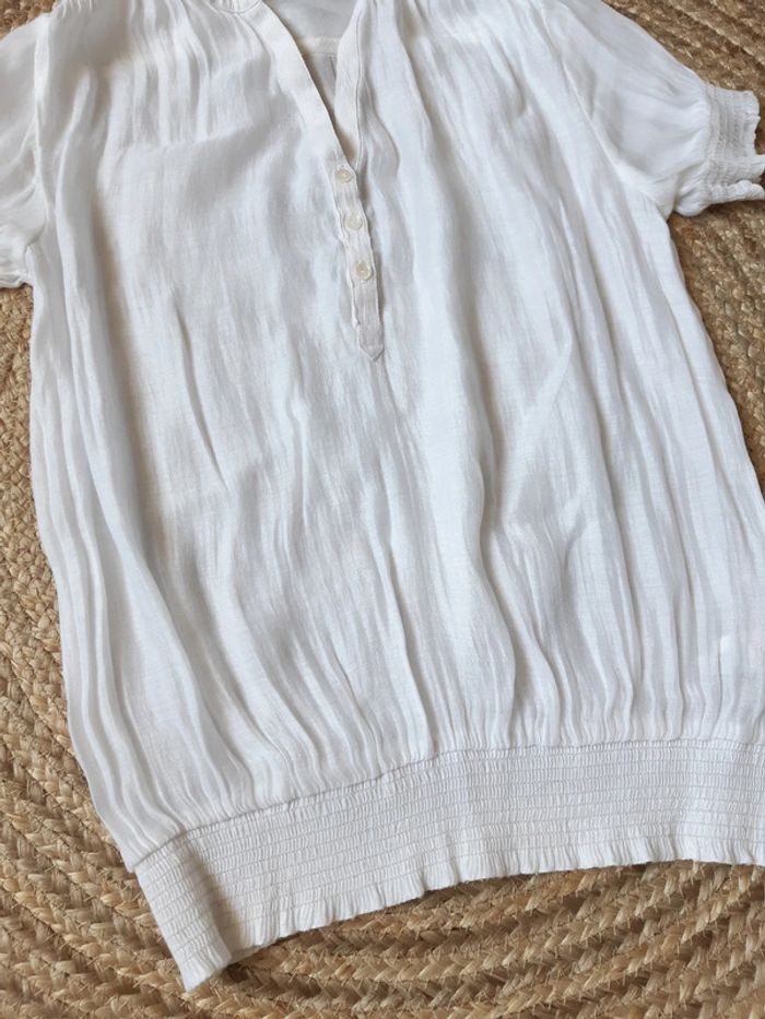 Haut à manches courtes Elastique aux bouts des manches et en bas du haut Boutonnée sur le devant Large Transparence A été porté, petits défauts en photo #anthonyagnes_femme38