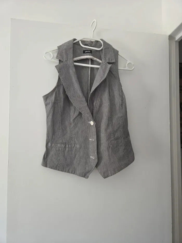Veste blazer sans manche gris à rayures. Taille 42, très bon état