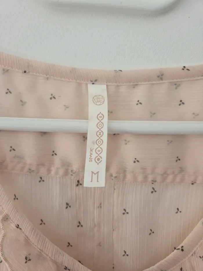 Blouse femme manche courte été rose fleuris transparente TBE taille M bonobo - photo numéro 1