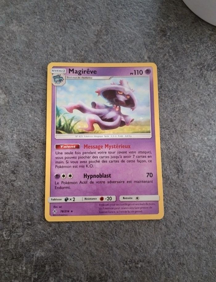 Je vends cette carte Pokémon Magirêve 78/124, un Pokémon de type Psy de niveau 1 avec un talent de Message Mystérieux. - Type de produit : Carte Pokémon - Pokémon : Magirêve - Niveau : 1 - Type : Psy - Talent : Message Mystérieux Très bon état N'hésitez pas à me contacter pour plus d'informations ou de photos.