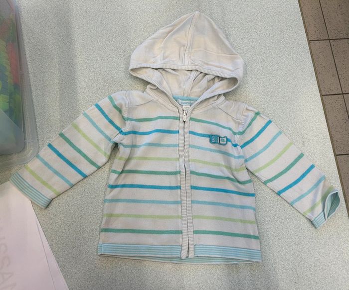 Gilet à capuche blanc à rayures Orchestra 18 mois