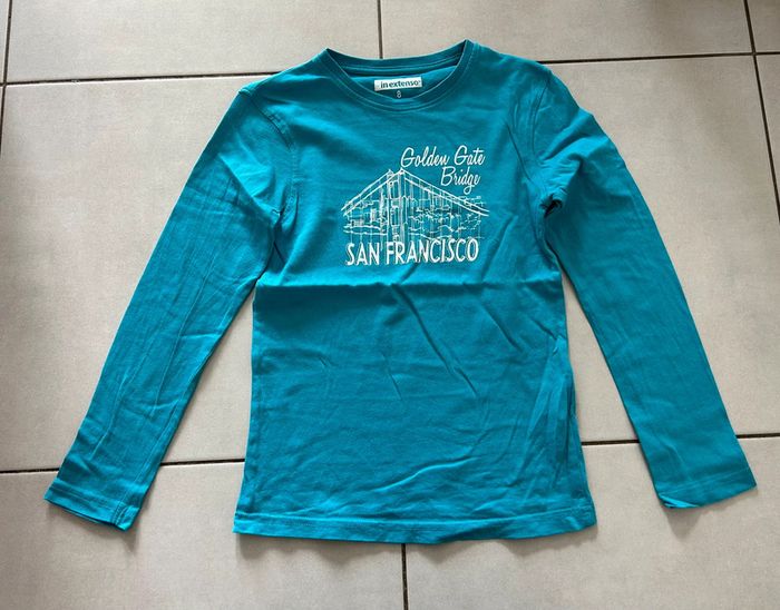 Tee shirt manches longues turquoise 8 ans