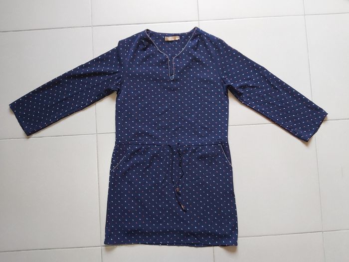 .Robe manche longue Couleur bleu avec motif Taille Resserable Doublure Manche réglable Taille S #carineddiSfemme