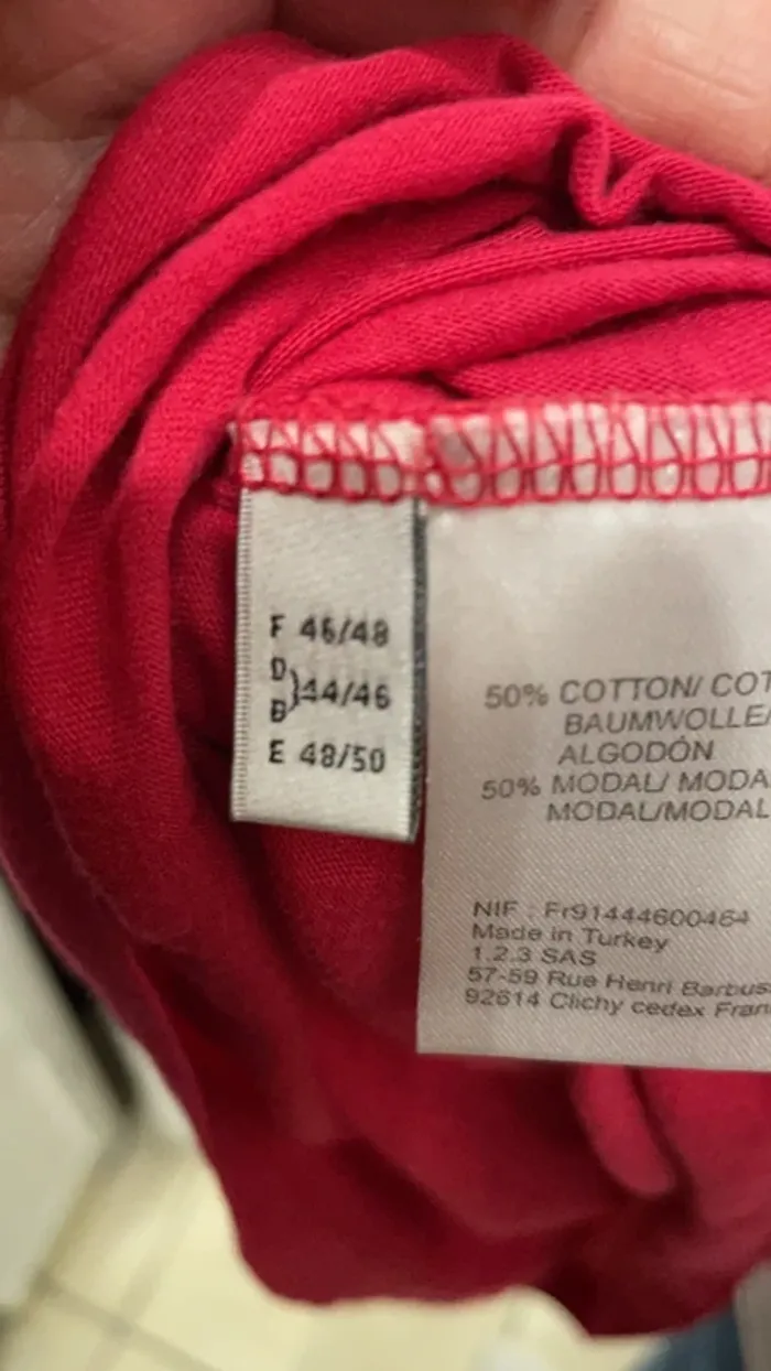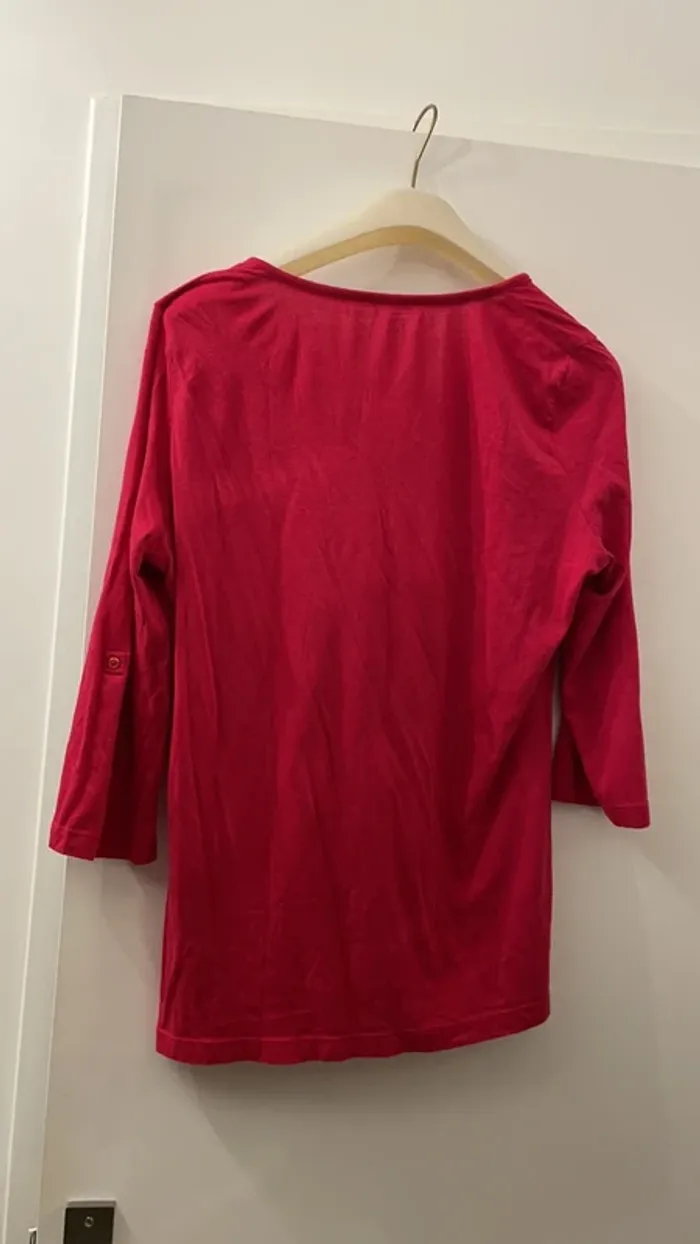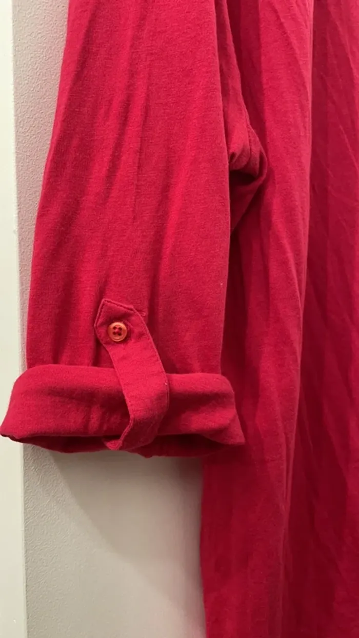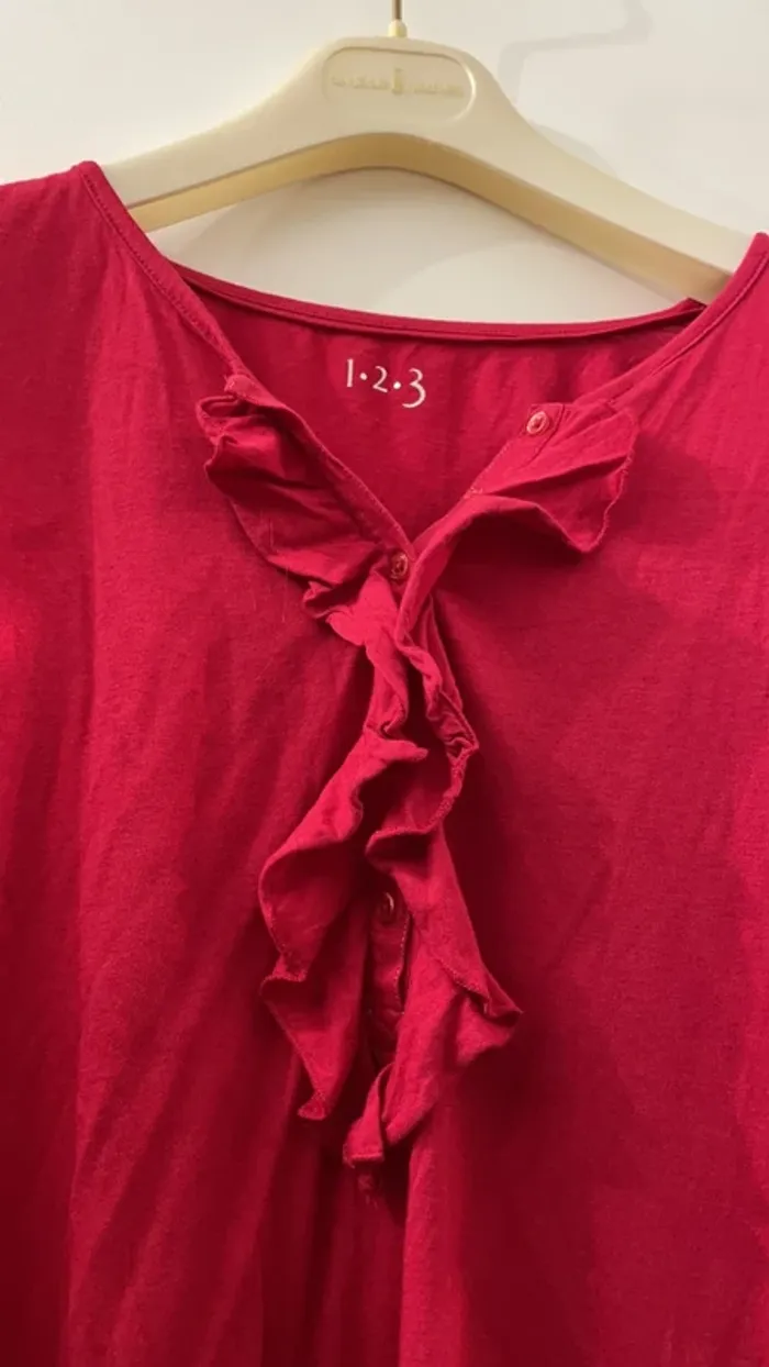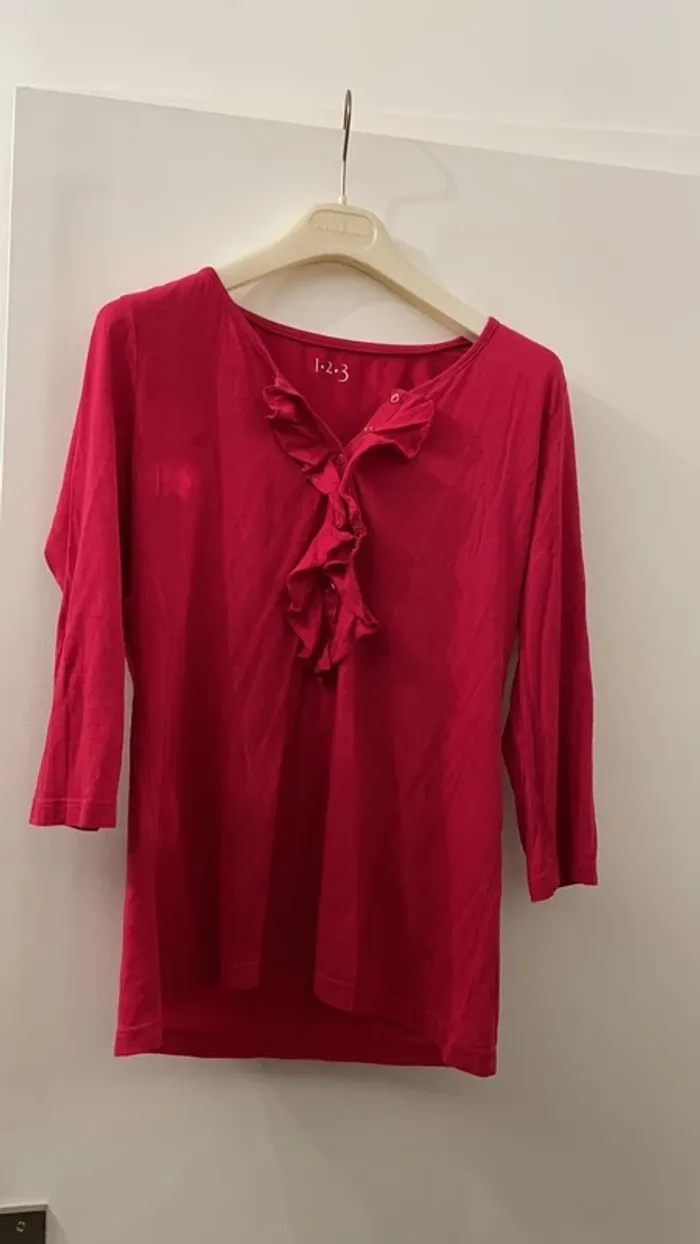 teeshirt couleur cerise avec froufrous devant Boutons à l’avant et manches retroussables Manches 3/4 Taille 46/48