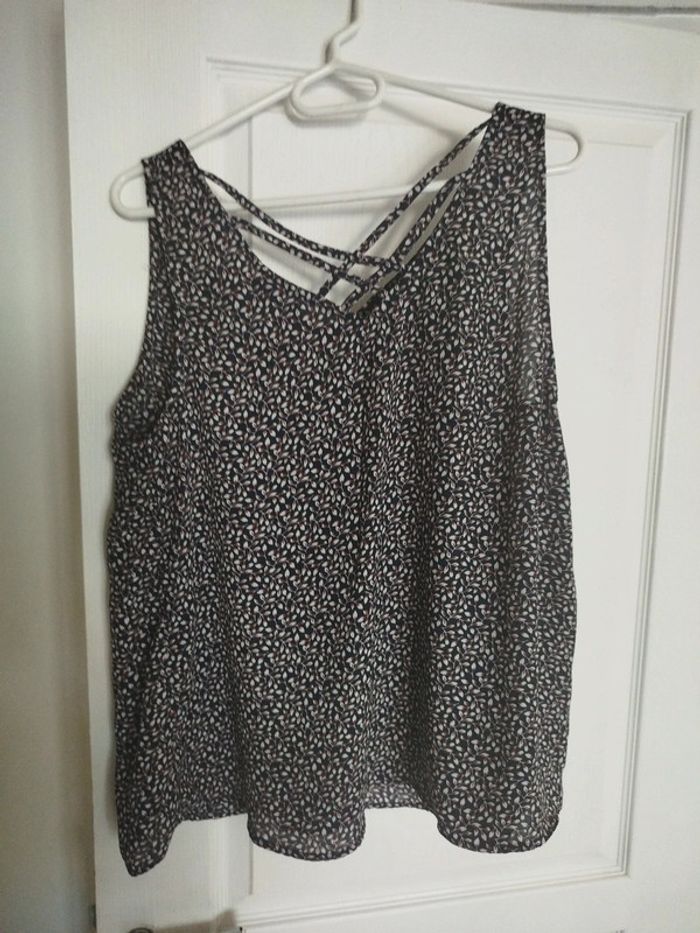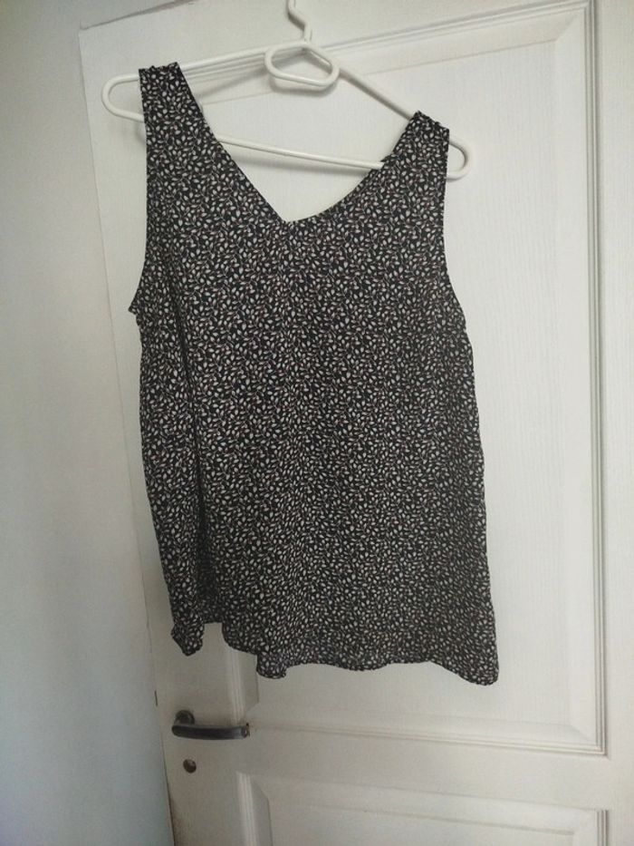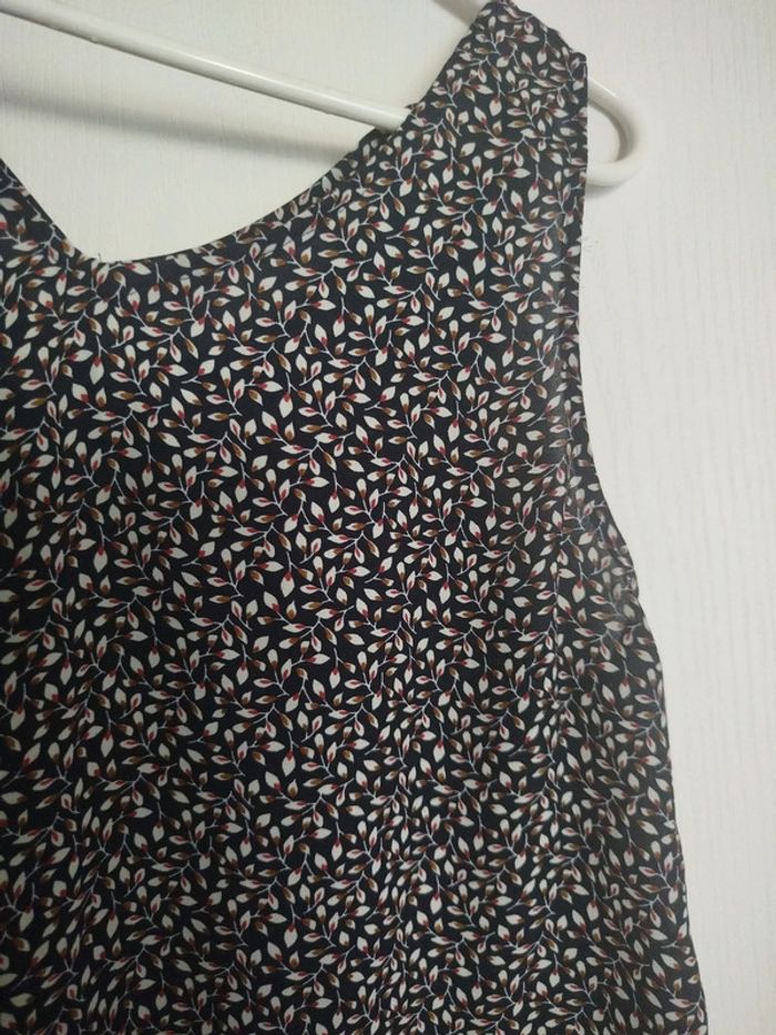 Bon état peu porté t44 bleu marine avec fleur avec un peu de bordeaux et marron