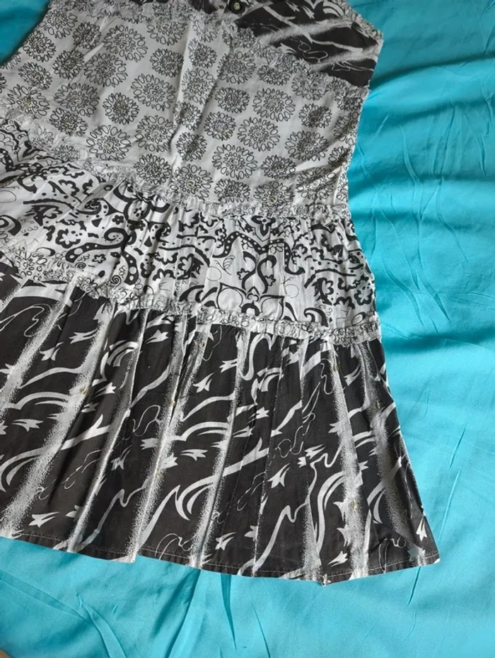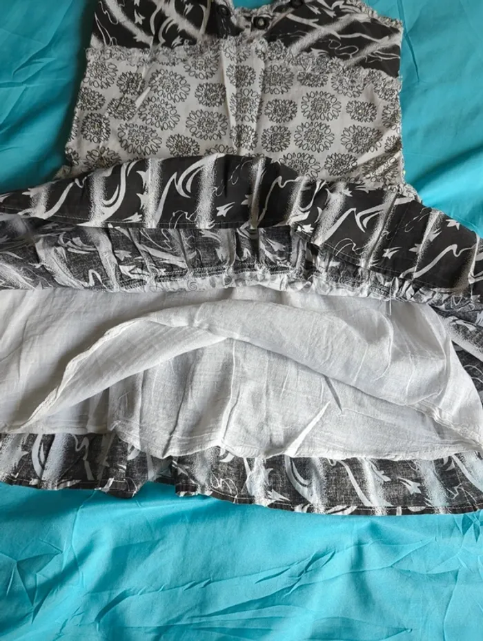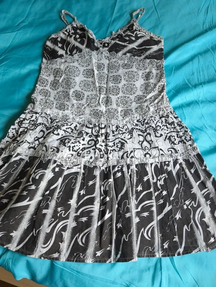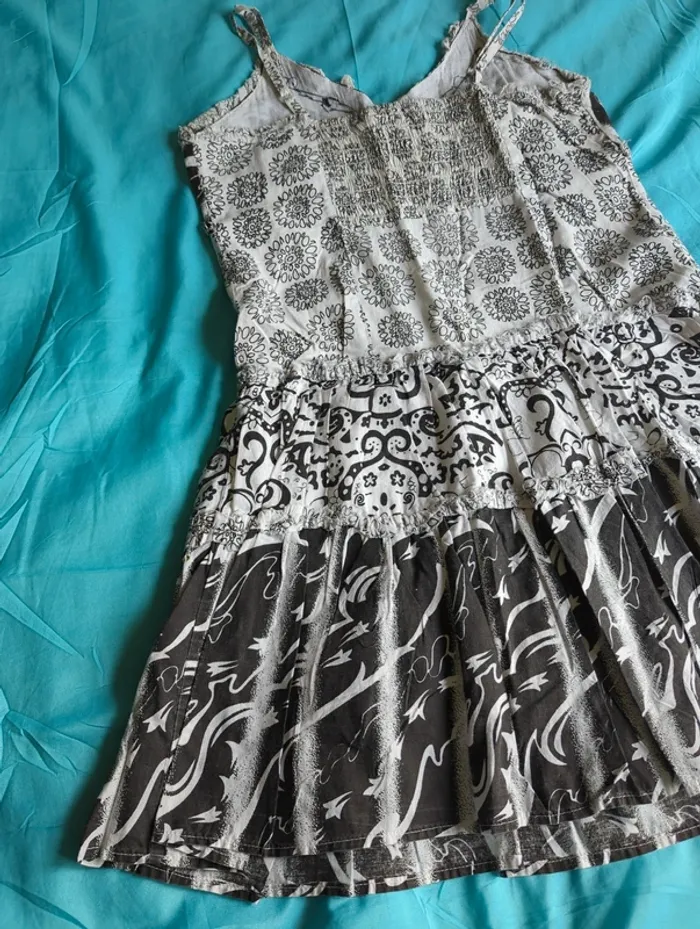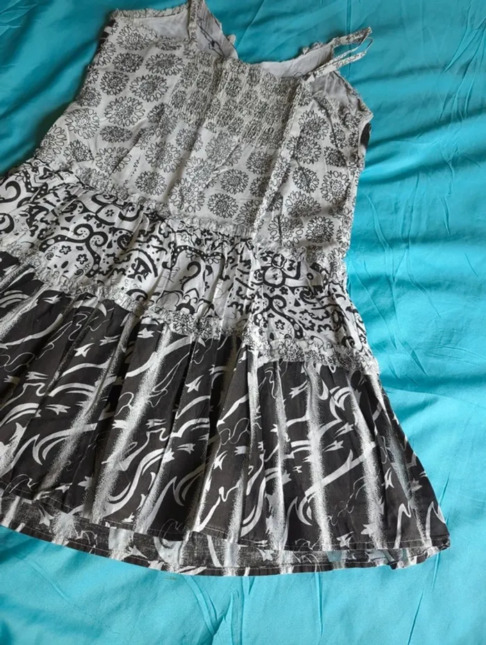 Robe à bretelles, réglables, noir et blanc, élastique au dos, fille 12 ans, portée plusieurs fois, état satisfaisant, marque est-elle ?