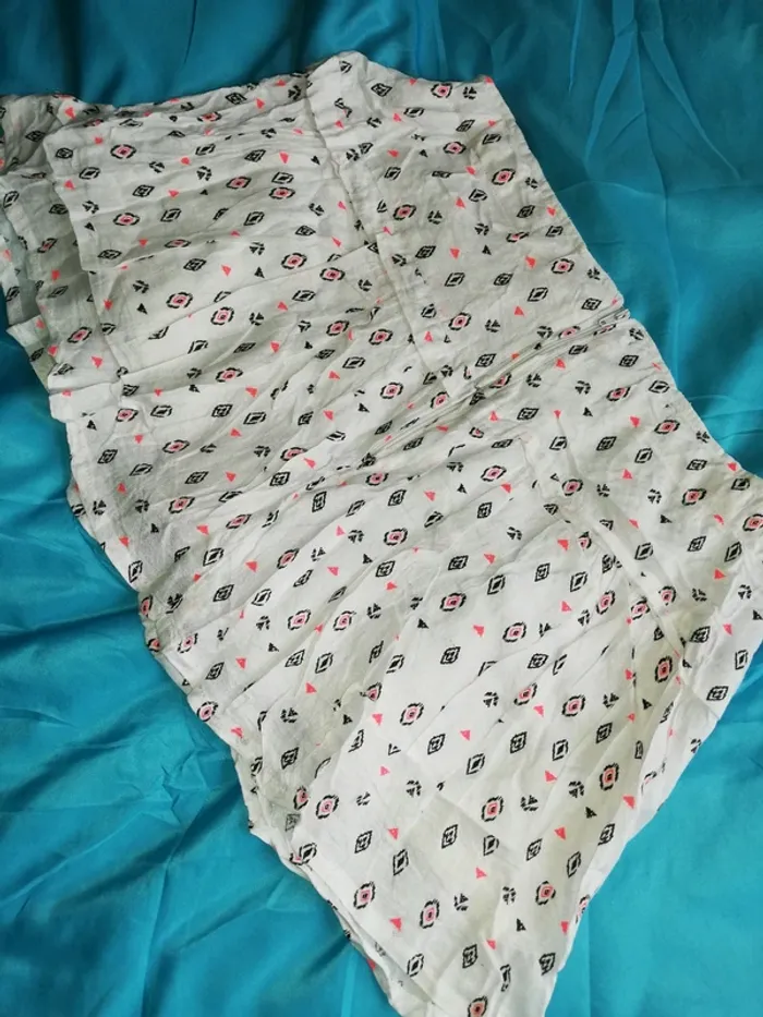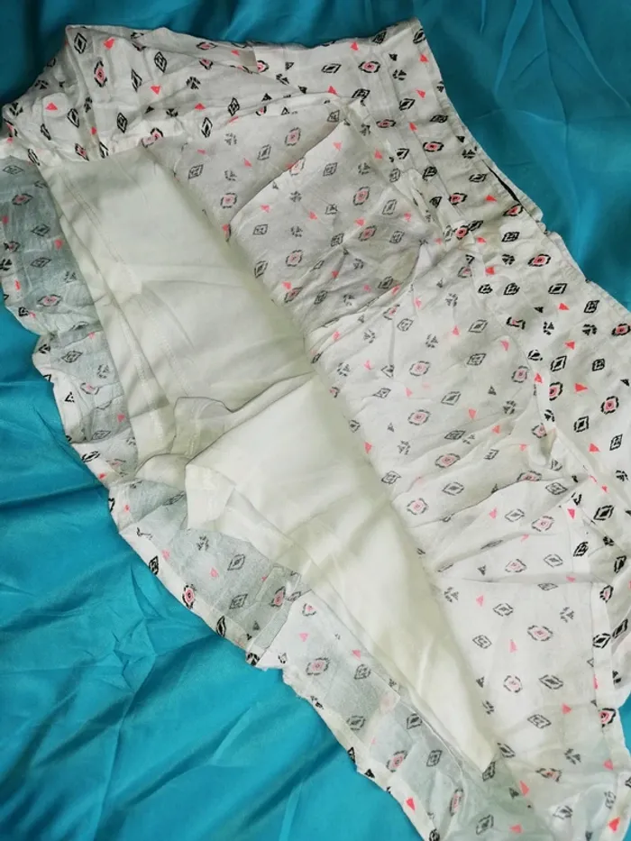 Jupe, short, blanc à motifs, taille ajustable, fermeture à glissière au dos, fille 14 ans, bon état, portée de nombreuses fois, marque kiabi.