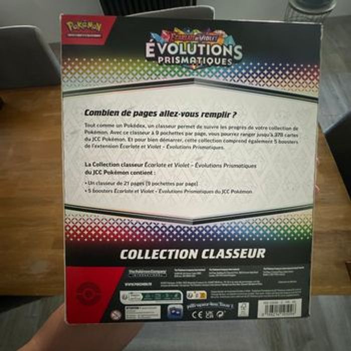 Collection classeur Ev8.5 tout neuf Contient 1 classeur Pokémon sur la série pour ranger la collection de cartes 5 boosters évolutions prismatiques Quantités disponible : 4 Pour toutes questions n’hésitez pas à m’envoyer un message