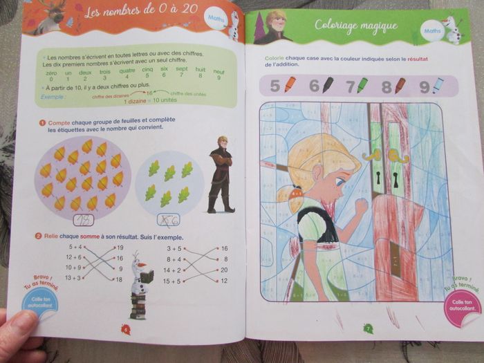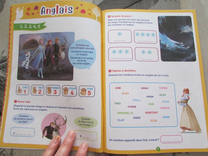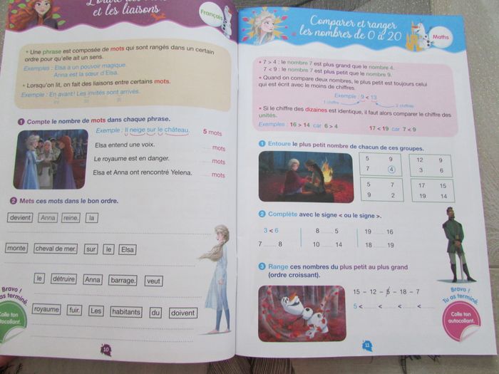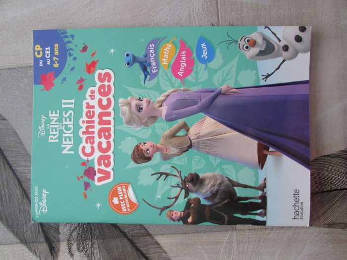 Cahier de vacances Disney La Reine des Neiges du CP au CE1 6/7 ans, état nickel. Il n'y a que les 2 premières doubles-pages qui ont été remplies. Tout le reste est nickel et aucun autocollant n'a été utilisé.