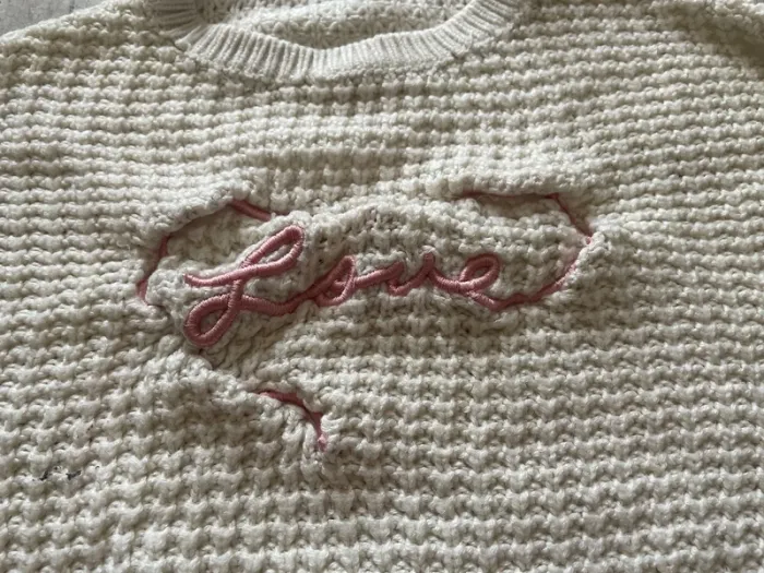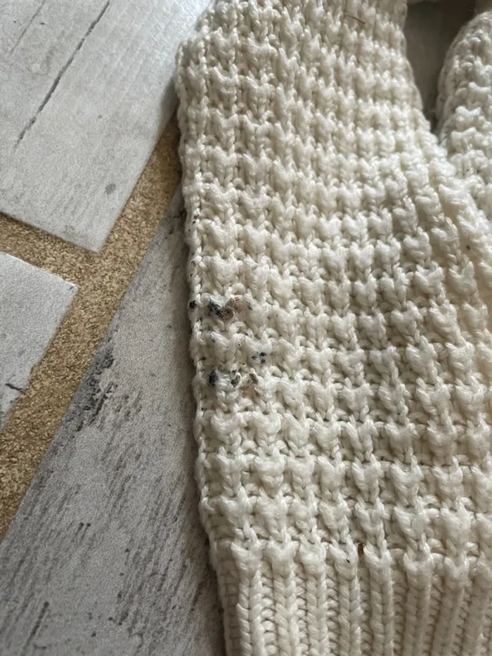 Joli pull crème en mailles, état satisfaisant car tâche de peinture (voir photo) #hiverfille4ans_sweetygirl3010