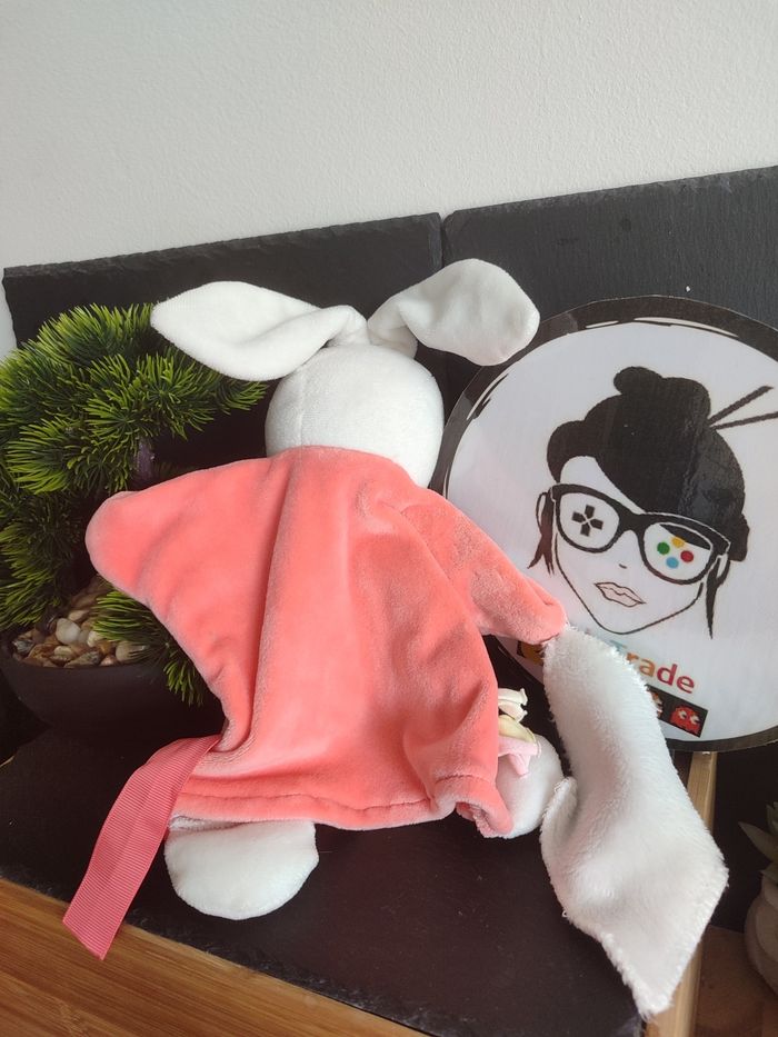 Doudou marionnette lapin orange blanc mouchoir Imagine kaloo étoile rond saumon - photo numéro 2