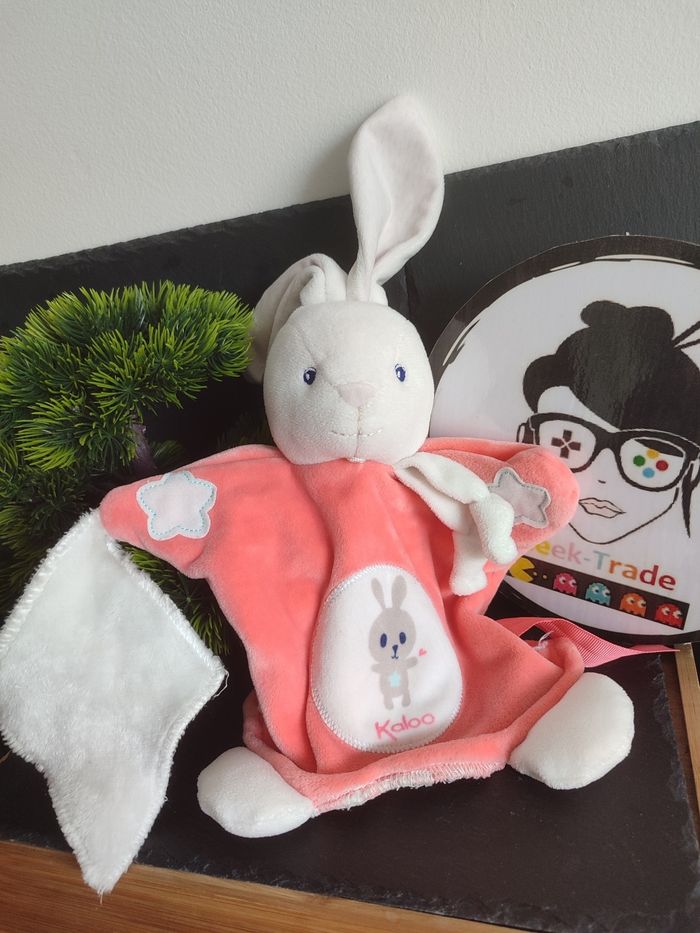 Doudou marionnette lapin orange blanc mouchoir Imagine kaloo étoile rond saumon - photo numéro 1