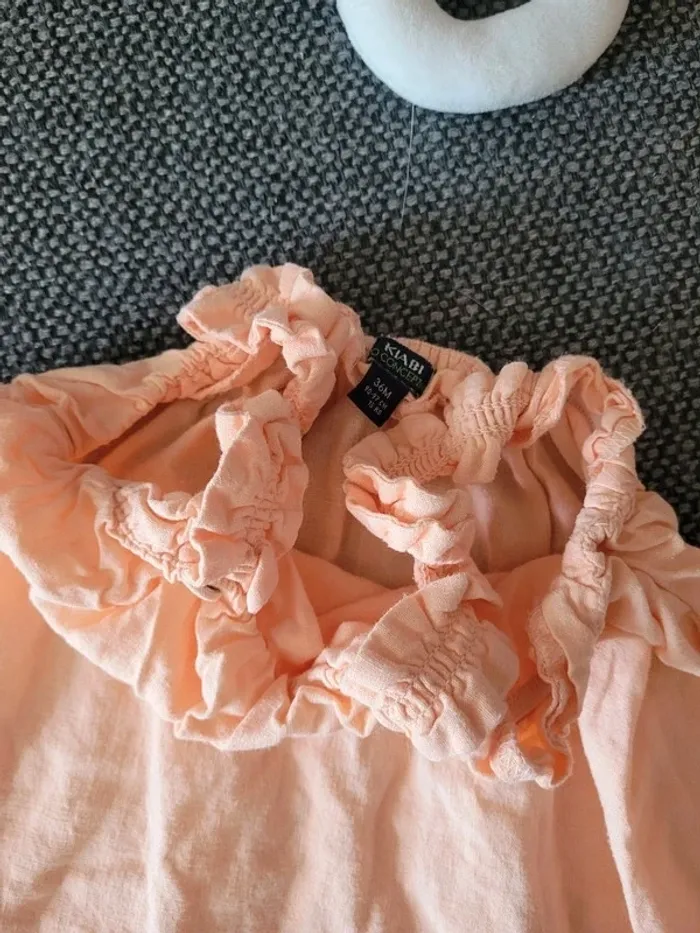 Combinaison pour fille de taille 36 mois et de la marque Kiabi Coupe oversize ample qui la rend confortable A fines bretelles avec des froufrous/volants Élastiquée en haut pour faciliter l'habillage Tissu léger Aucune tâche ni trou #mabi38780fille36mois